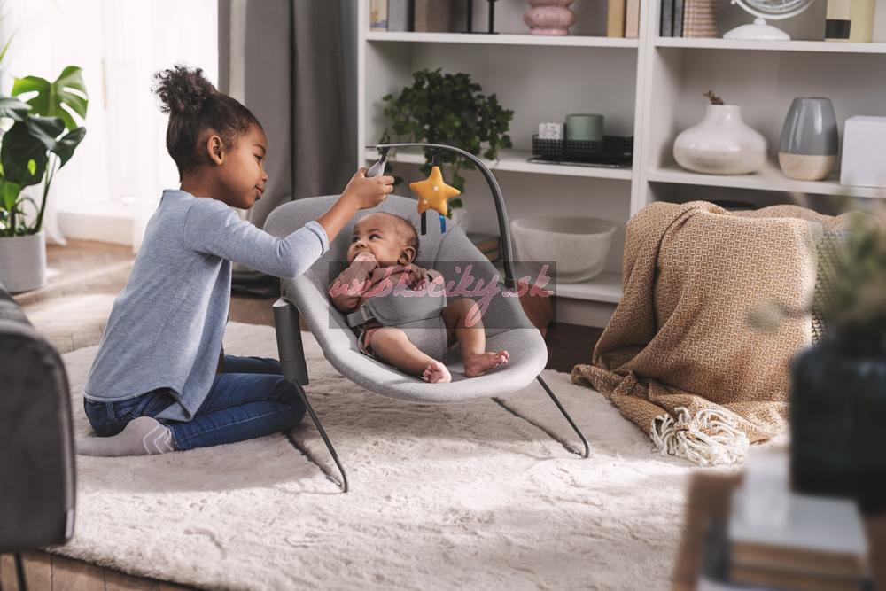 - Podpora vývoja hravým spôsobom – hračky na hrazdičke priložené k ležadlu povzbudia dieťa na vystieranie rúk a trénovanie si chytania, a tak podporia jeho motorický vývin.
