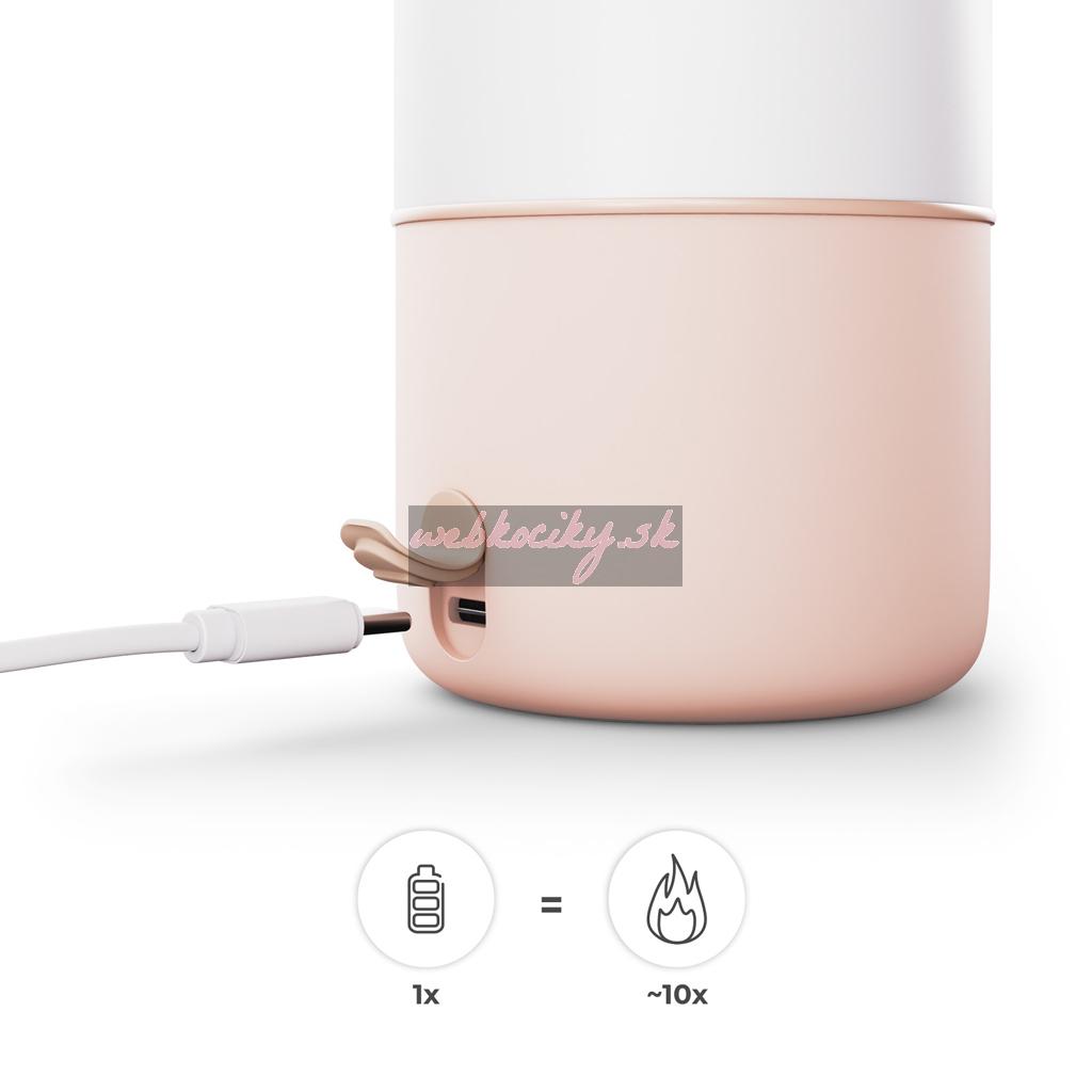 Na každodenné použitie je dôležitá aj hygiena a mobilita. GAJA má odnímateľnú batériu, ktorá uľahčuje čistenie užívateľskej časti a prepravu zariadenia. S hmotnosťou 815 g je praktická a ľahko sa balí – užitočná vždy, keď je rodina na cestách. Nabíjanie je pohodlné cez USB, čo zvyšuje pohodlie na cestách av prírode. GAJA funguje ako termoska s funkciou ohrevu a udržuje tekutiny na teplote až 20 hodín. To znamená, že nápoj je pripravený presne vtedy, keď je potreba - cez deň aj v noci.