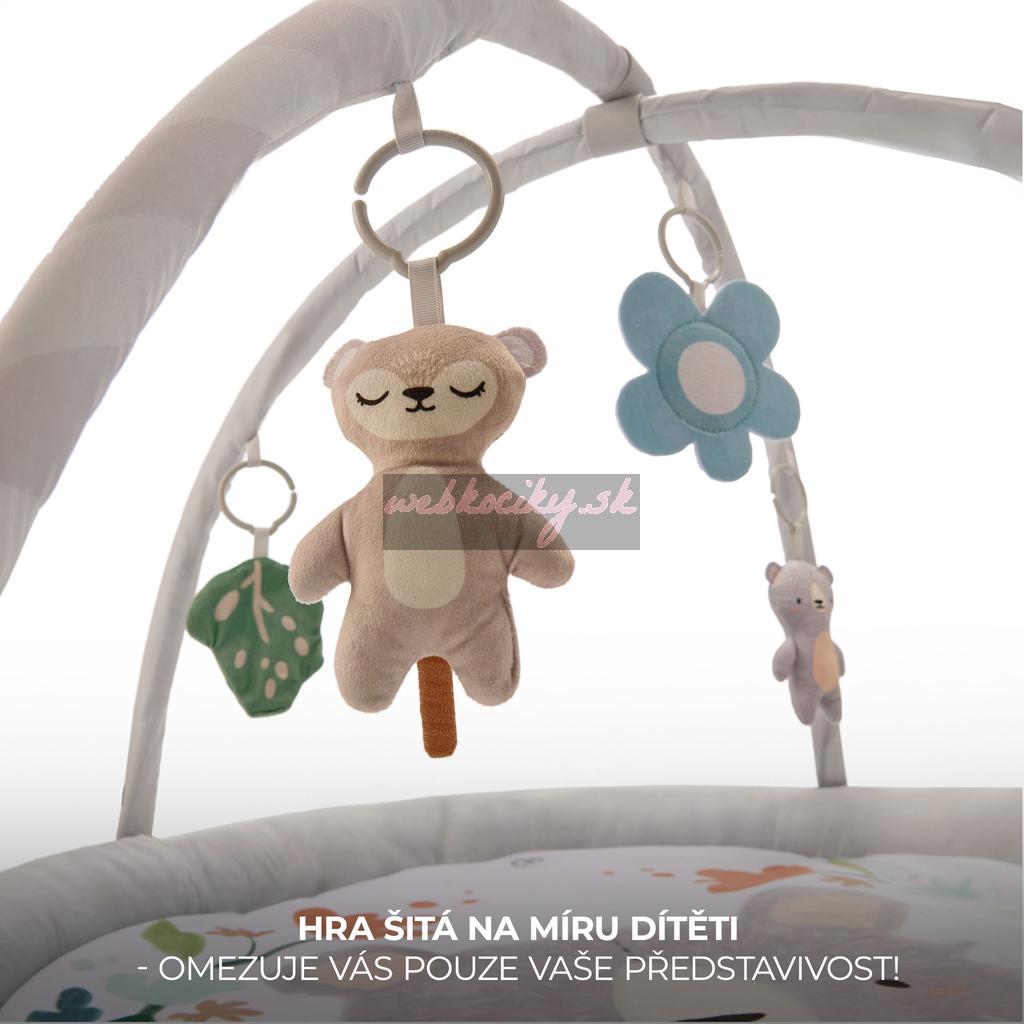 Súčasťou balenia je 5 hracích prvkov: zrkadielko, 2 plyšové hračky, šuštiaca hračka a hryzačka, ktorá podporujú psychomotorický vývoj vášho bábätka.