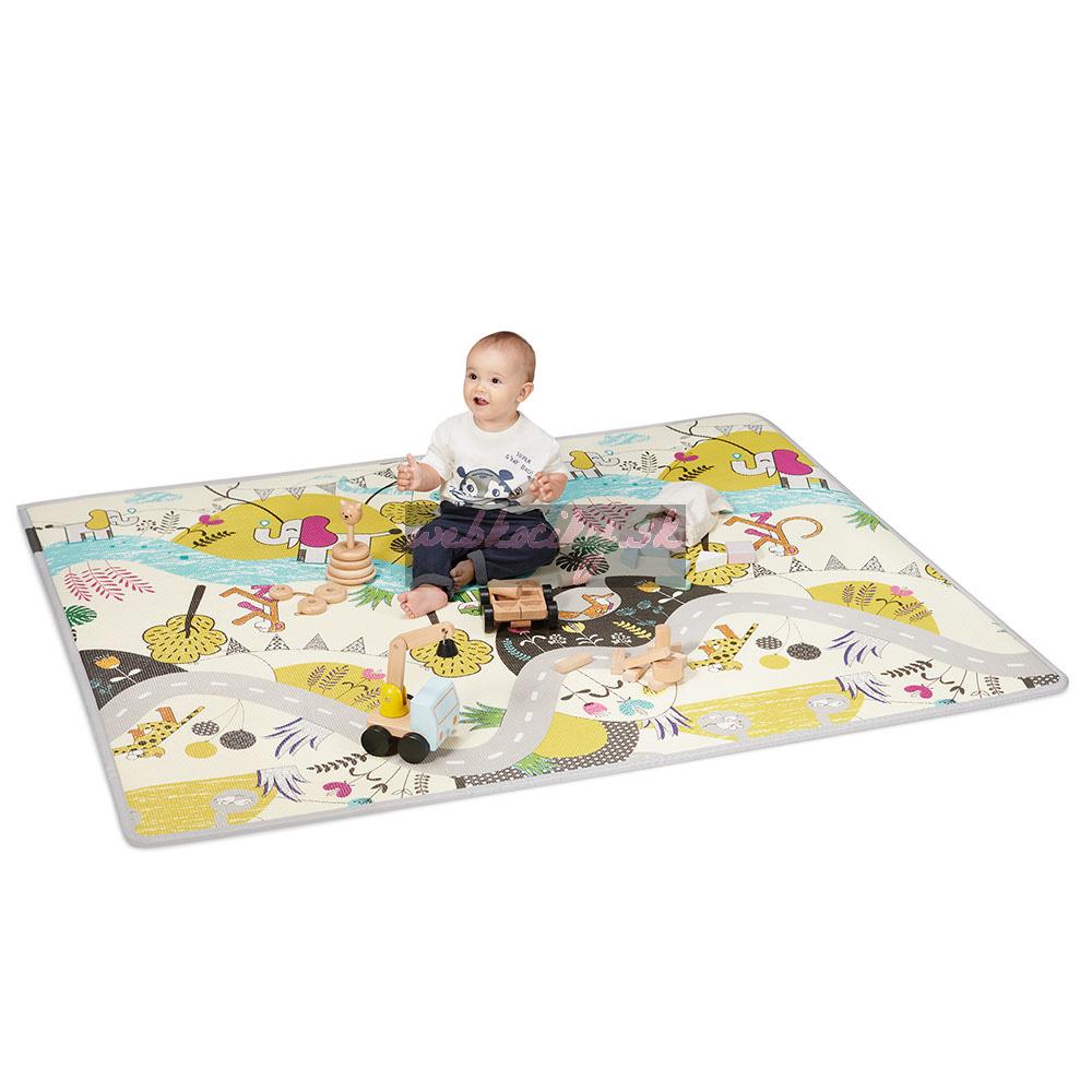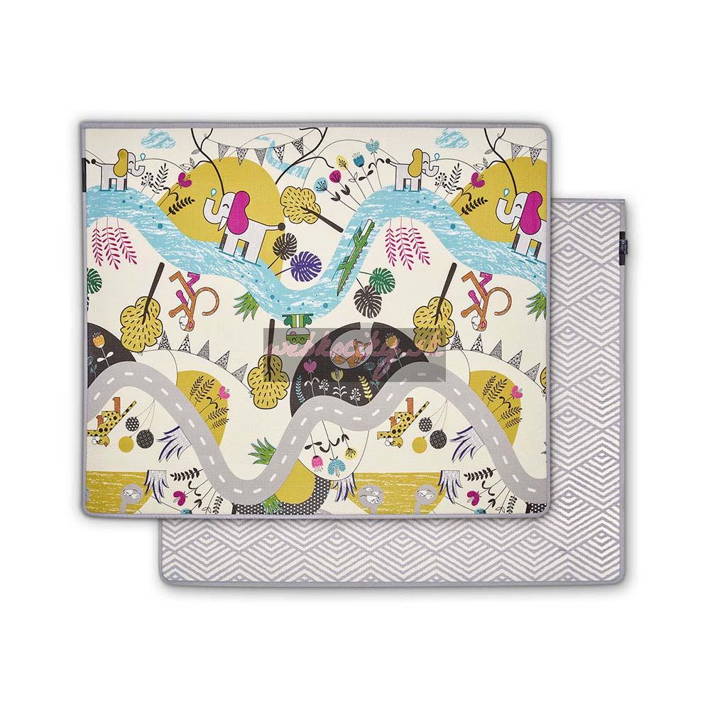 - Obojstranná — na jednej strane je univerzálny geometrický vzor, a na druhej strane: vzor s domácimi miláčikmi, cesta a rieka povzbudzujúca dieťatko ku hre.