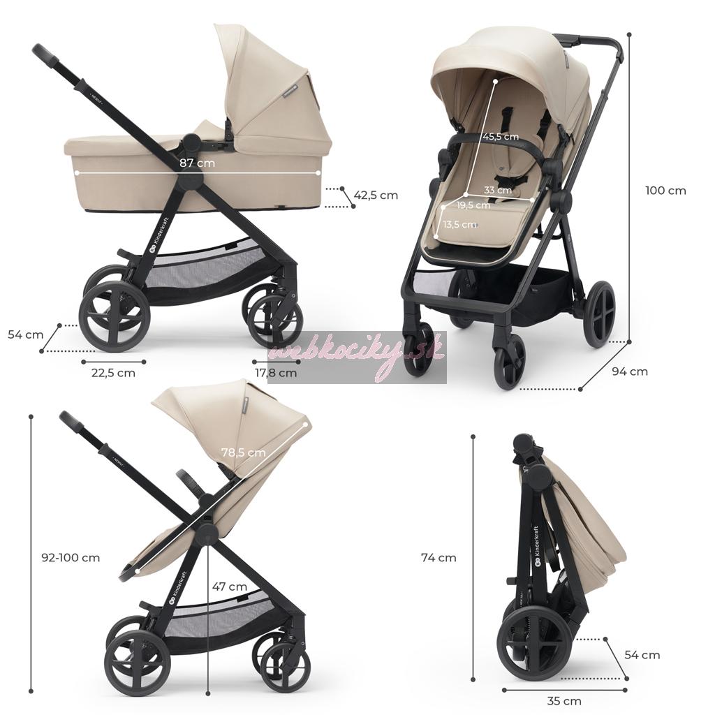 KINDERKRAFT Kočík kombinovaný 3v1 Newly Sand beige + Mink PRO