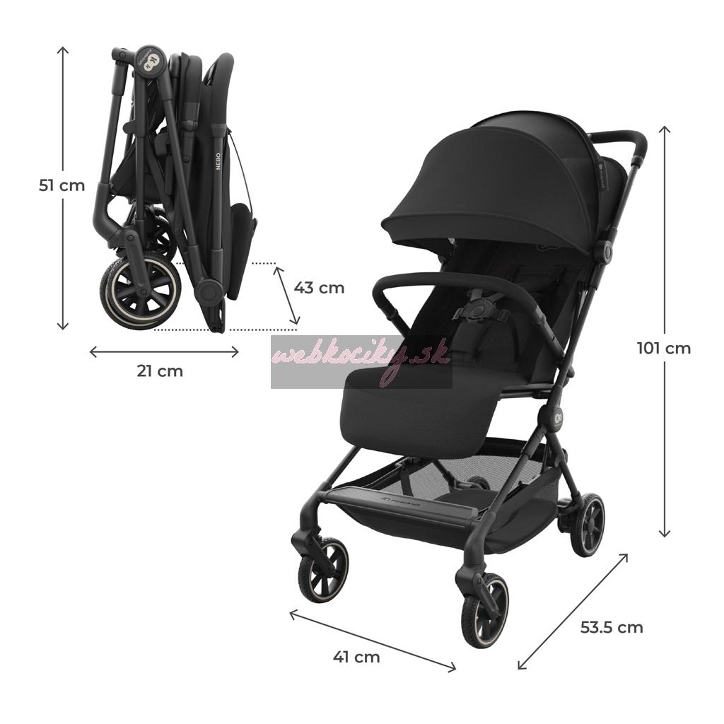 Mechanizmus skladanie jednou rukou umožňuje rýchle zloženie kočíka aj v dynamických situáciách. Po zložení kočík samostatne stojí a jeho rozmery (51 × 43 × 21 cm) zodpovedajú štandardom príručnej batožiny, čo výrazne zvyšuje komfort cestovania.