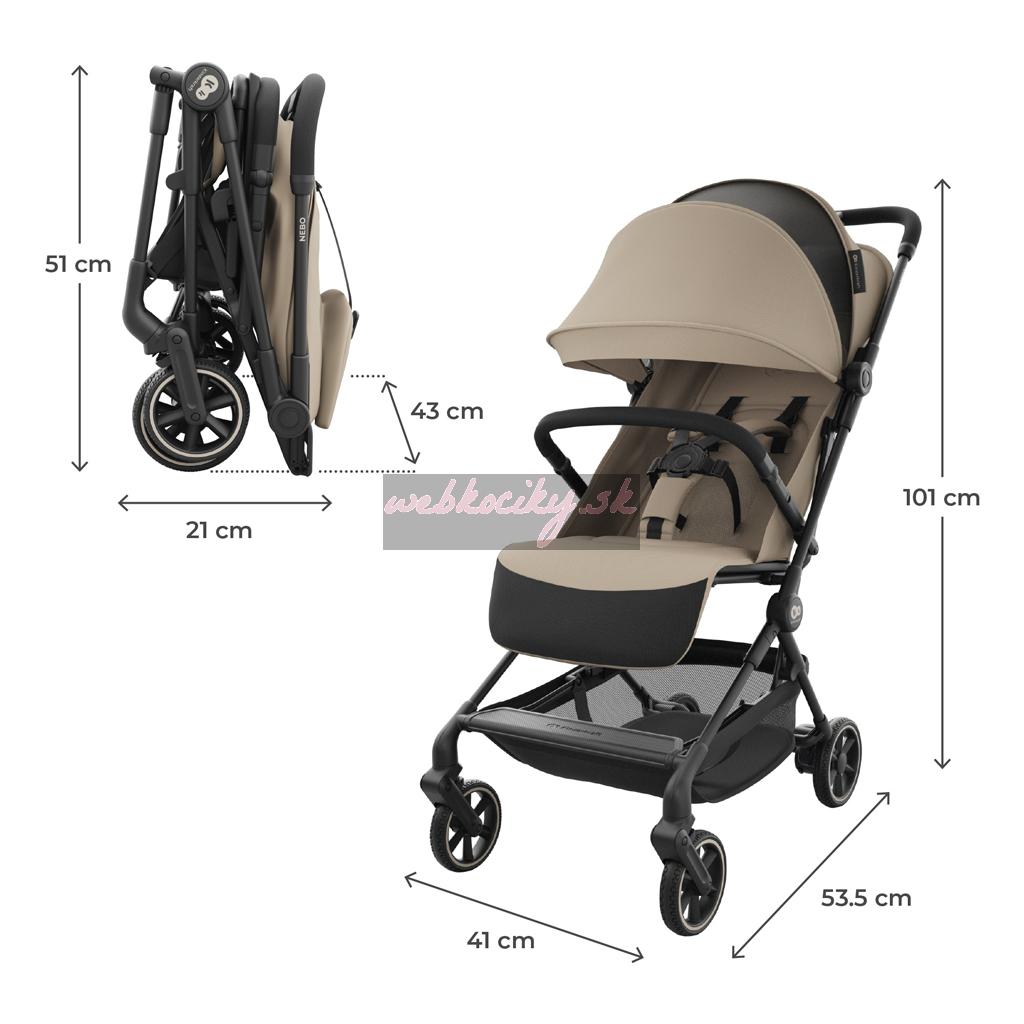 Kinderkraft NEBO je kompaktný športový kočík typu cabin, vytvorený pre cestujúcich rodiny, ktoré rady zbierajú spoločné zážitky a potrebujú maximálnu mobilitu bez kompromisov v oblasti pohodlia a bezpečnosti. Vďaka ľahkej konštrukcii a premysleným riešeniam je NEBO ideálny na letisko, do lietadla aj na každodenné prechádzky mestom.