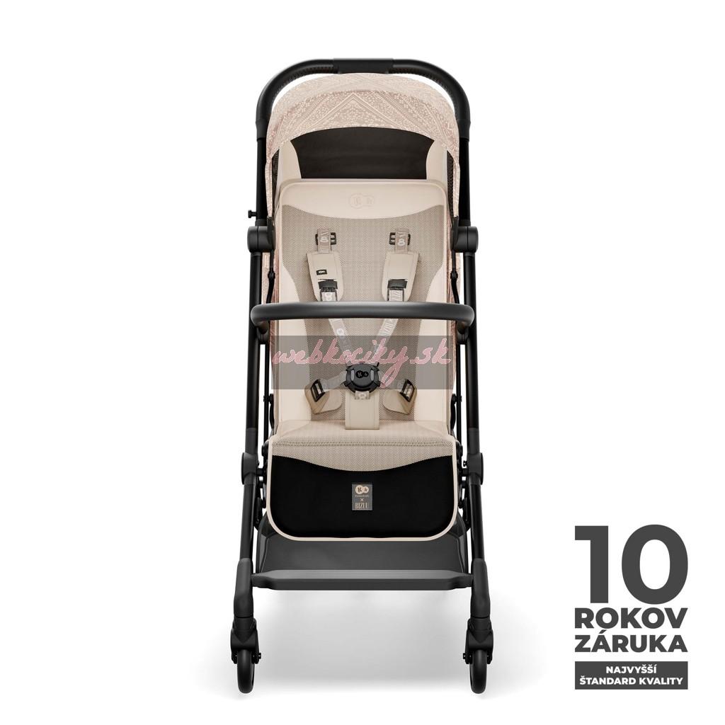 Magnetické, päťbodové bezpečnostné pásy zaručujú bezpečnosť a jednoduché používanie - zapnutie a odopnutie trvá len chvíľu. Bezpečnostný pás je tiež vybavený pohodlným výškovým nastavením, ktoré vám umožní prispôsobiť ho výške dieťaťa alebo hrúbke oblečenia bez toho, aby ste ho museli znova zapínať. Otočný nárazník, ktorý sa dá z oboch strán odobrať, navyše uľahčuje nakladanie a vyberanie dieťaťa z kočíka a poskytuje rodičom maximálny komfort.