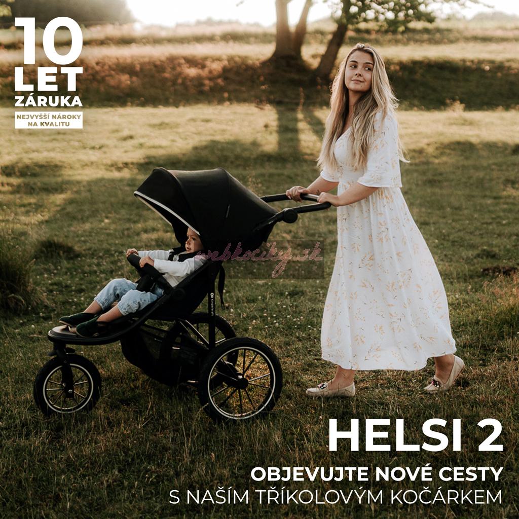 HELSI 2 je terénny kočík pre ľudí, ktorí milujú aktivitu na čerstvom vzduchu. Odolný rám a trojkolesová konštrukcia zaisťujú bezpečnosť detí približne do 5 rokov. S HELSI 2 budete môcť aktívne tráviť čas vonku spolu so svojím dieťaťom.