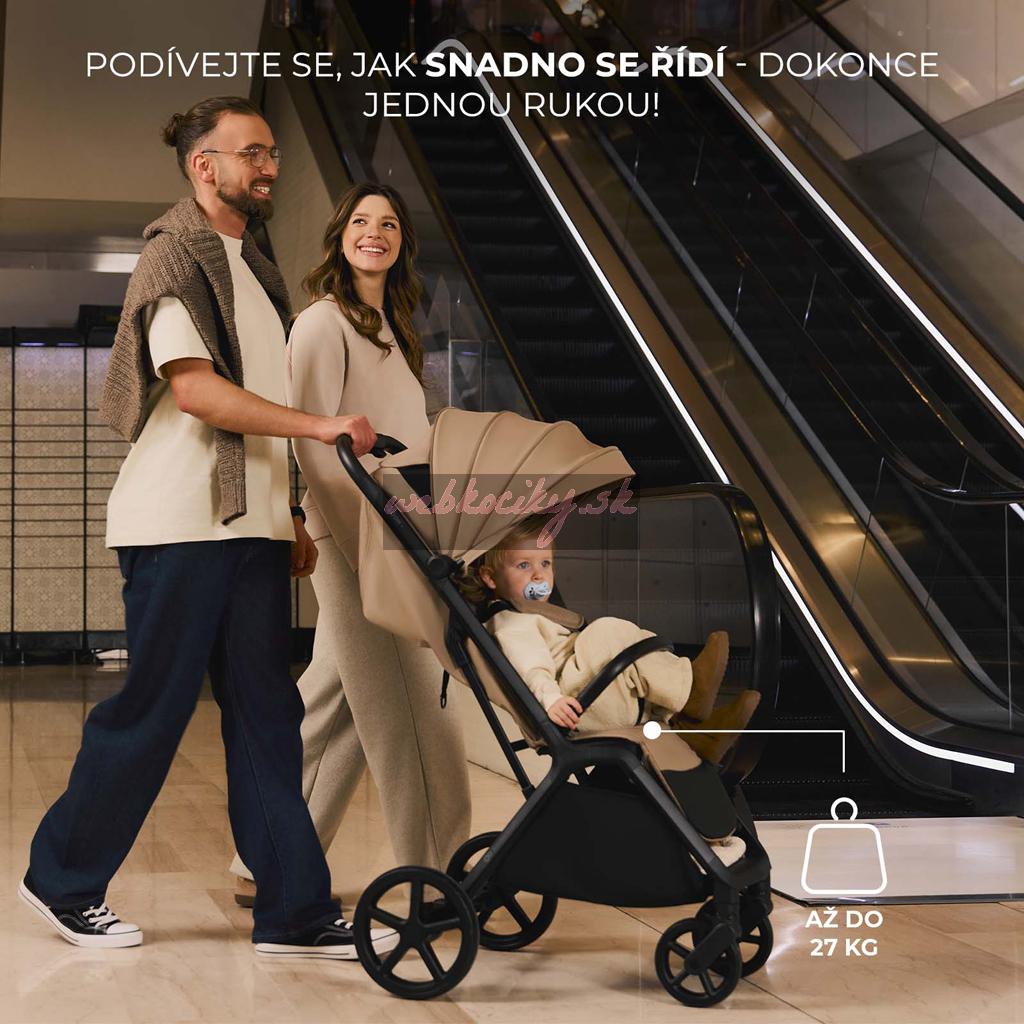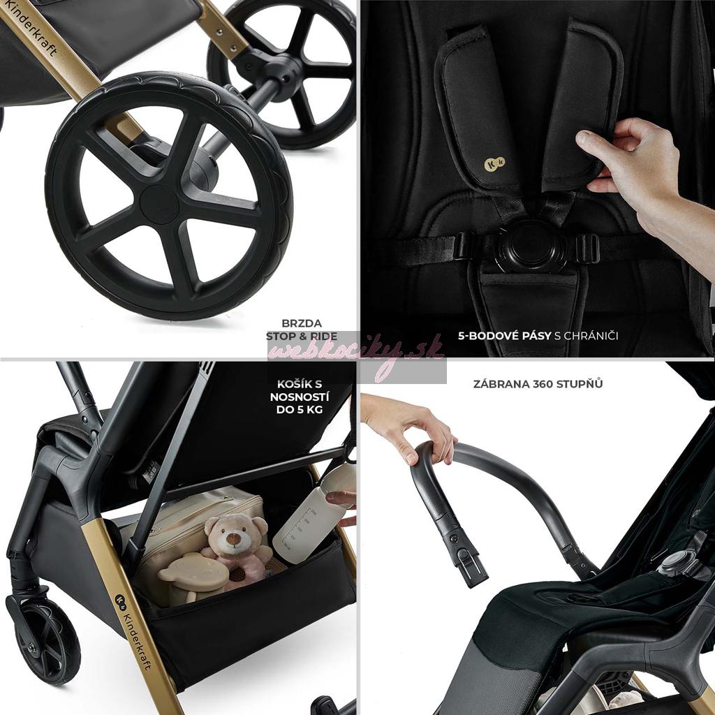 Kočík ponúka nastaviteľné operadlo, dve úrovne nastavenia opierky na nohy a otočné bezpečnostné madlo s možnosťou odpojenia, čo uľahčuje vkladanie a vyberanie dieťaťa z kočíka. Priestranný košík s kapacitou 5 kg pod kočíkom umožňuje pohodlné uloženie nákupov a ďalších potrebných vecí.