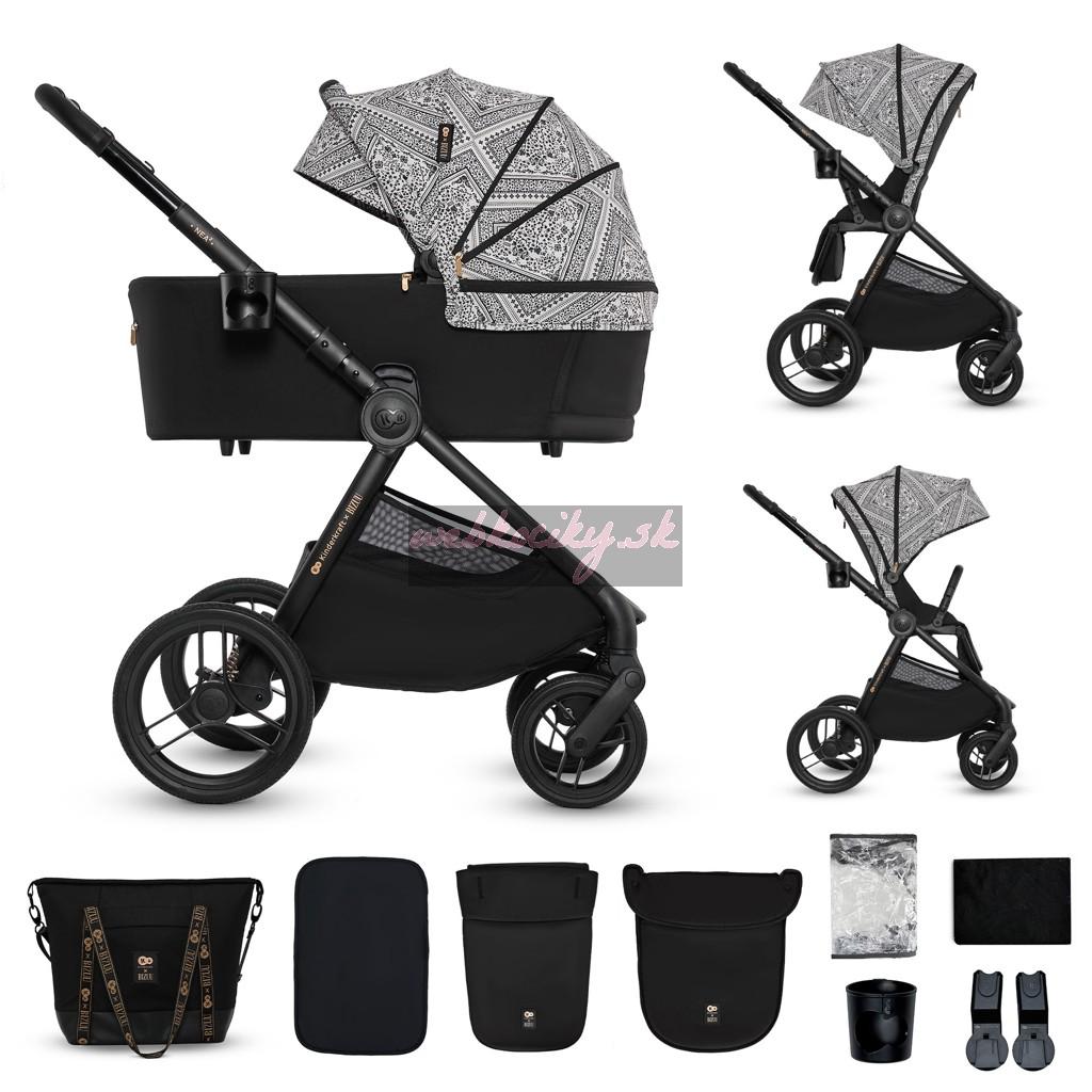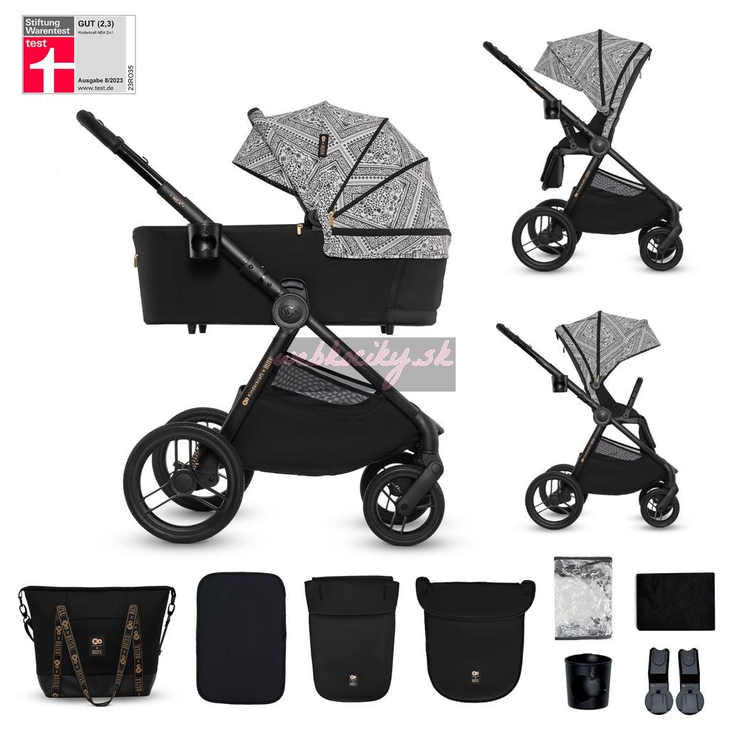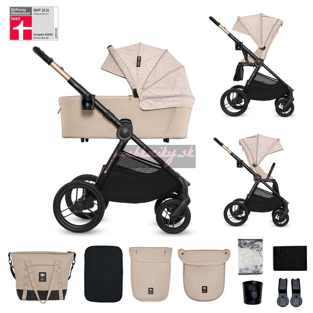 - Sada praktického príslušenstva: univerzálne adaptéry na autosedačku, nánožník pre vaničku a športovú časť, matrac do vaničky, držiak na pohár, pláštenka, sieťka proti hmyzu a nová prebaľovacia taška.