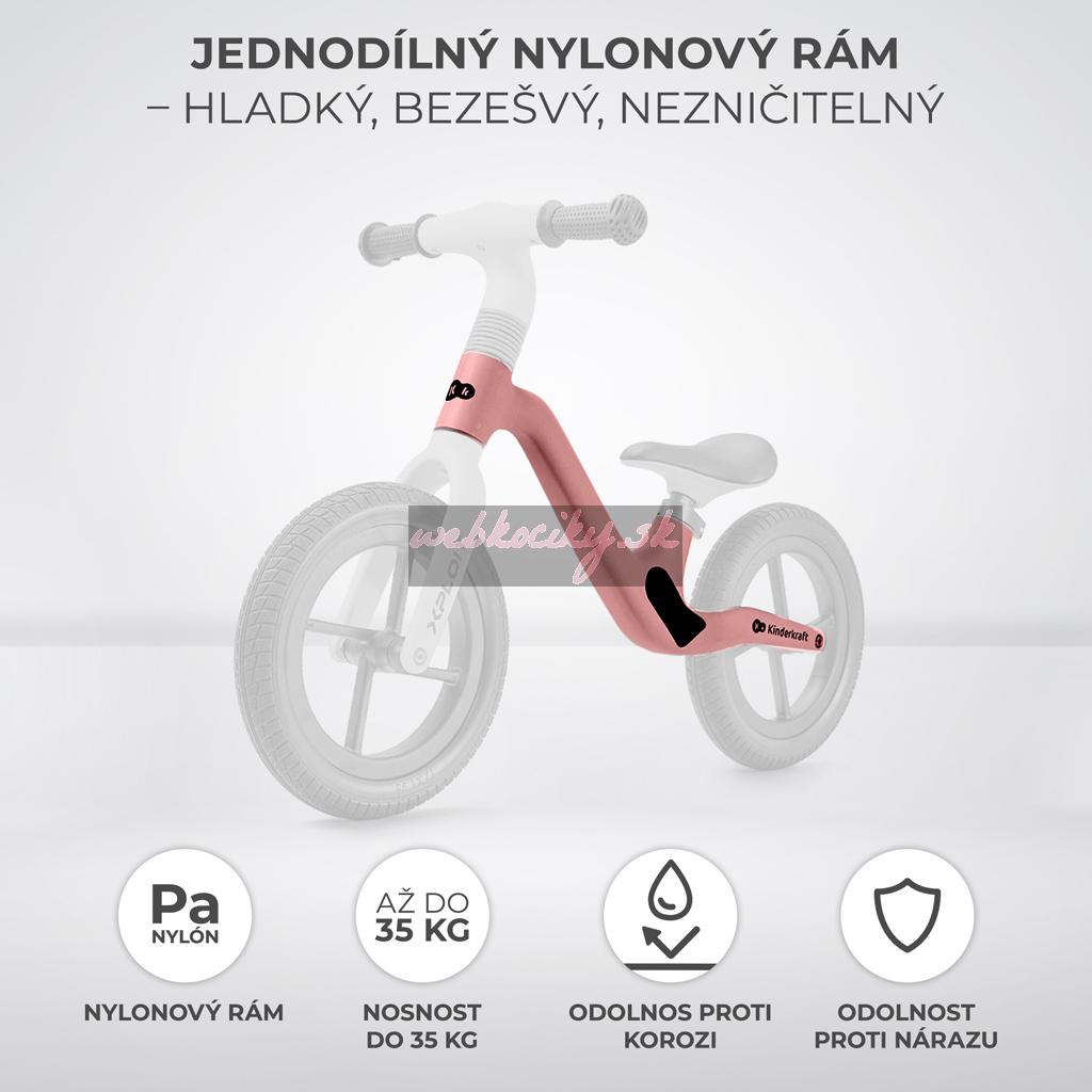 Detské odrážadlo XPLOIT znesie akékoľvek podmienky pri prechádzke. Je vyrobené z ľahkého odolného nylonu: jednodielny rám je odolný voči korózii a nárazu a zároveň má hladkú povrchovú úpravu, takže je bezpečné a pohodlné pre deti. Samotný detský bicykel je ľahký (rám váži necelé 1 kg) a má športový štýl, bude ako stvorený pre každého malého športovca.
