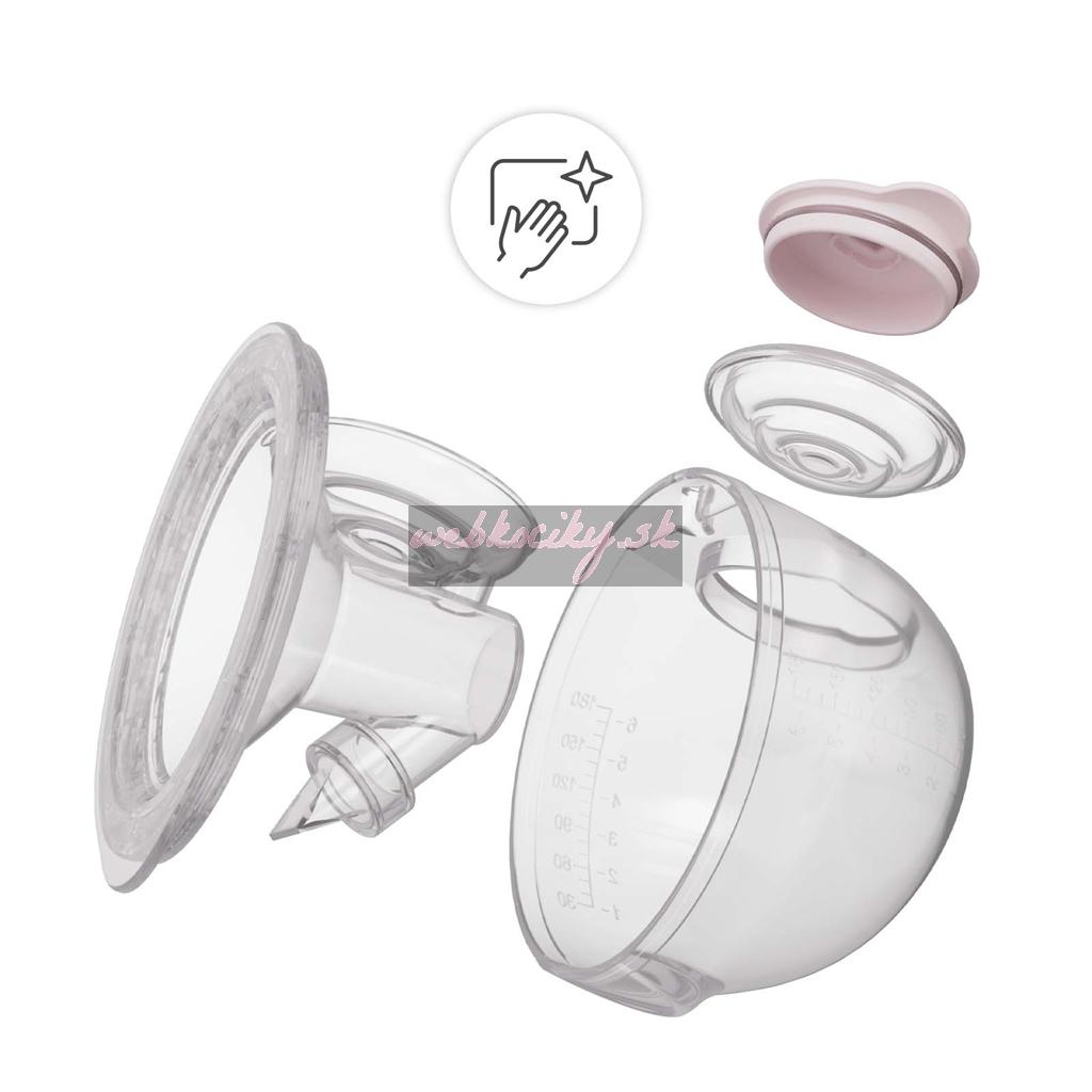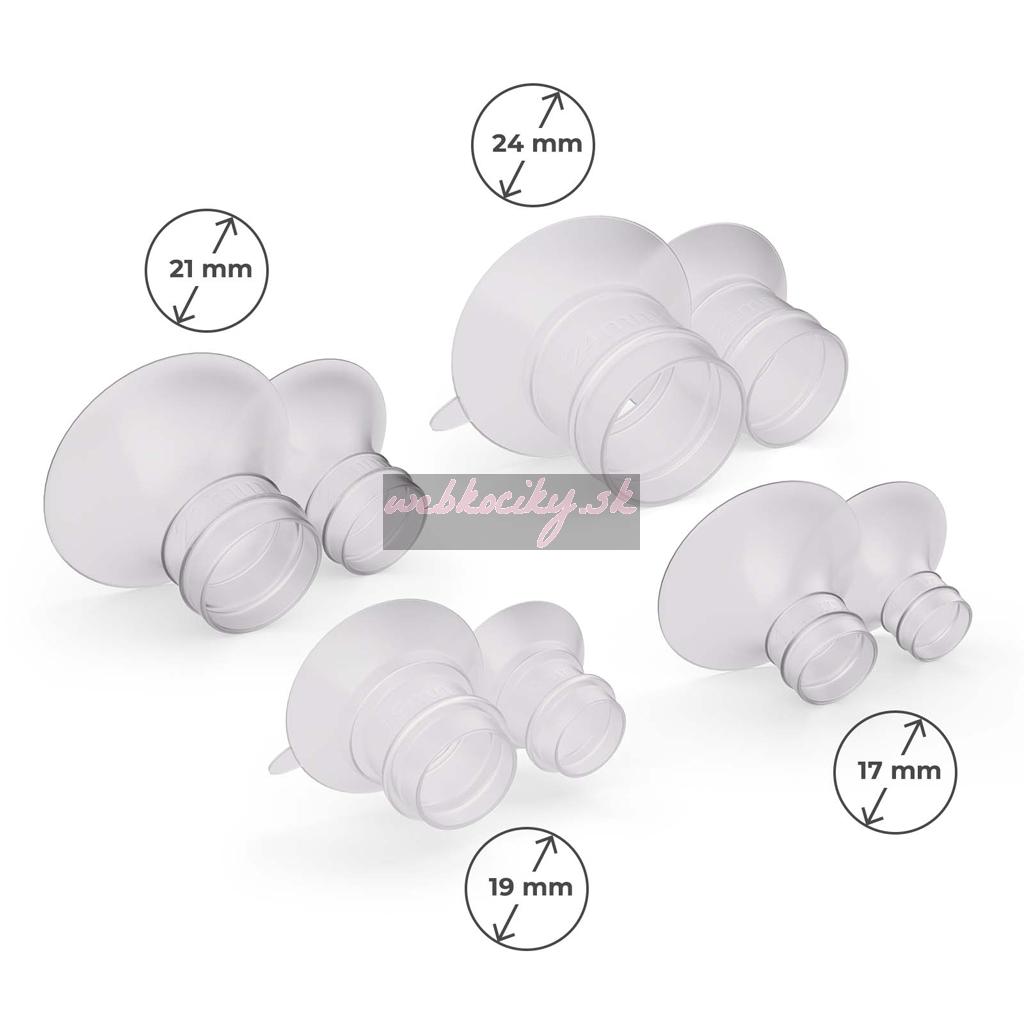 Súčasťou dodávky je sada lievikov (27 mm, 24 mm, 21 mm, 19 mm, 17 mm) uľahčuje prispôsobenie veľkosti vašej anatómii, čo sa premieta do skutočného pohodlia pri odsávaní. Fľaštička s objemom 180 ml vám umožní absolvovať odsávanie bez častého vyprázdňovania. Jednoduchá montáž a znížený počet dielov zefektívňujú umývanie a sterilizáciu, a to všetko ďalej podporí ďalšia sada 6 membrán a 6 ventilov pre dlhšie používanie, a to až na 12 mesiacov.