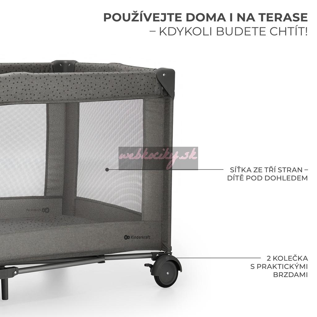 Do interiéru aj exteriéru - JOY 2 je vhodná aj na vonkajšie použitie - napríklad na balkóne alebo terase. Sieťované bočné strany vám umožnia mať dieťa neustále na očiach a zároveň zabezpečia dostatočné prúdenie vzduchu pre vaše dieťatko počas teplejších dní. JOY 2 má aj dve kolieska, ktoré vám uľahčia presúvanie postieľky medzi miestnosťami. Budete tak mať svoje dieťa neustále na očiach.
