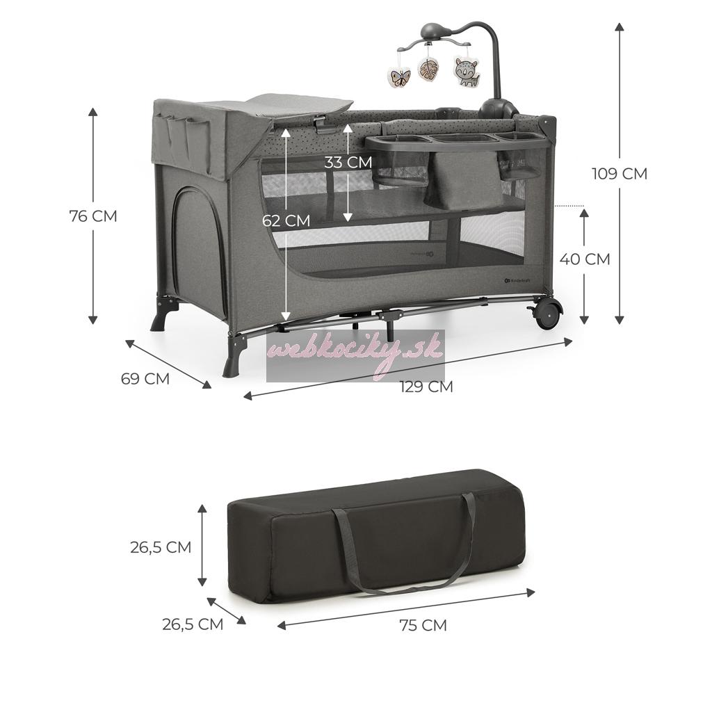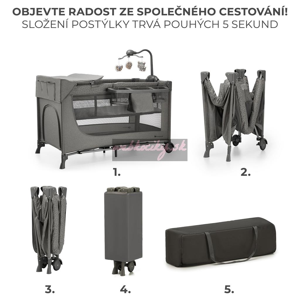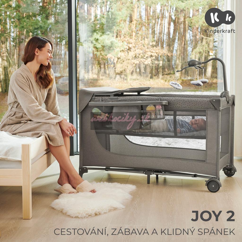 KINDERKRAFT Postieľka cestovná Joy 2 s doplnkami Dark grey