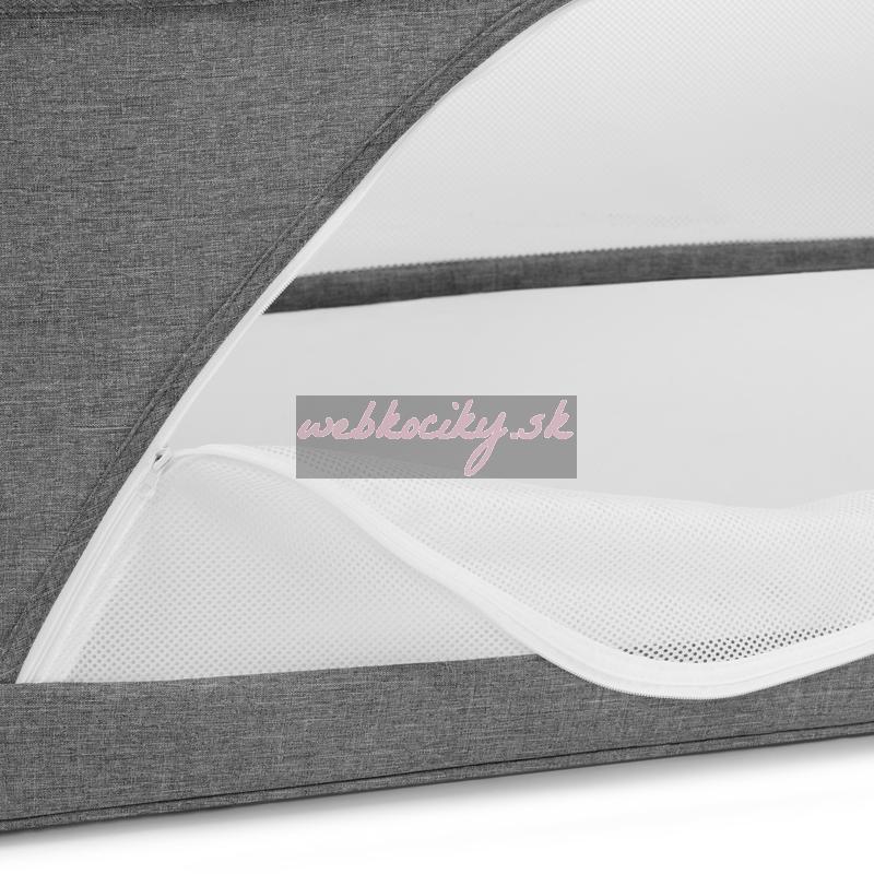 - detská postieľka má špeciálny materiál, ktorý zabezpečuje dobré vetranie a umožňuje dieťaťu sledovať svet