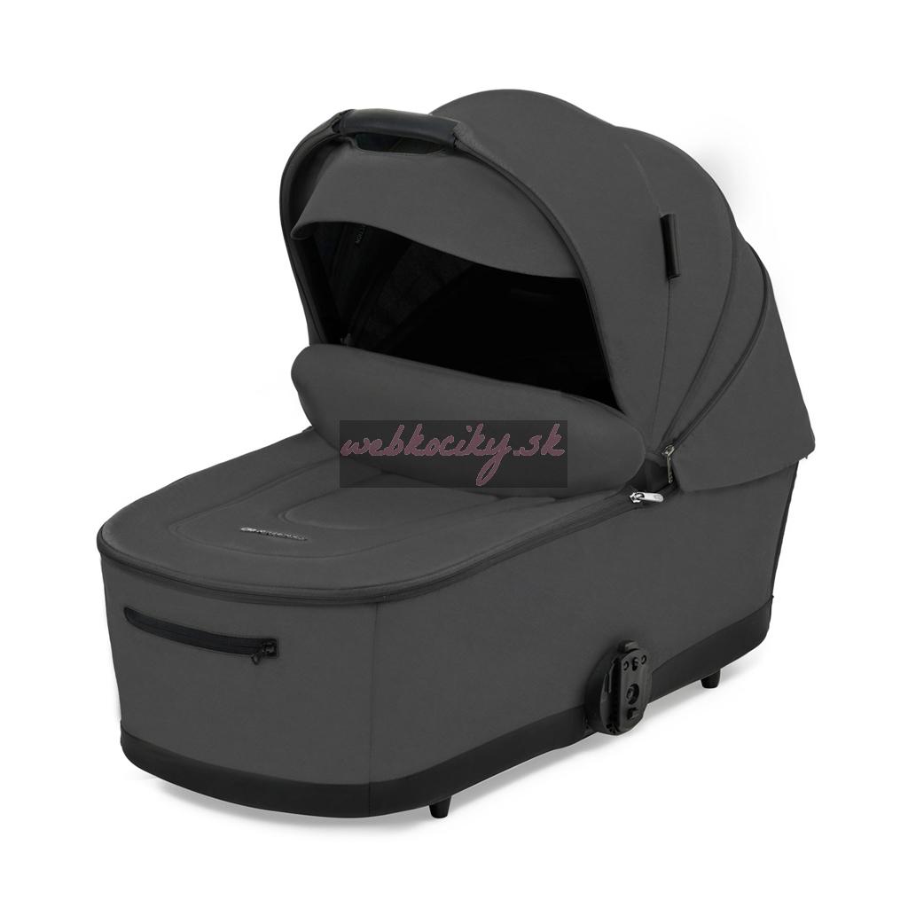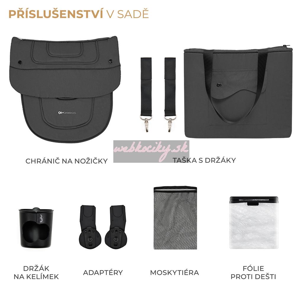 Veľkorysý kôš s nosnosťou až 5 kg pojme všetky potrebné veci. Ďalšia deka a plienky? Alebo nákupy, ktoré ste urobili po ceste domov? Jednoduchý prístup z oboch strán vám umožní rýchlo vytiahnuť každú vec. Kočík sa dodáva aj s príslušenstvom: sieťkou proti hmyzu (v opierke na nohy, ktorú budete mať vždy so sebou), kryt na nožičky, pláštenkou proti dažďu, držiakom na pohár, taškou na rukoväť pre rodiča a adaptérmi na autosedačku.