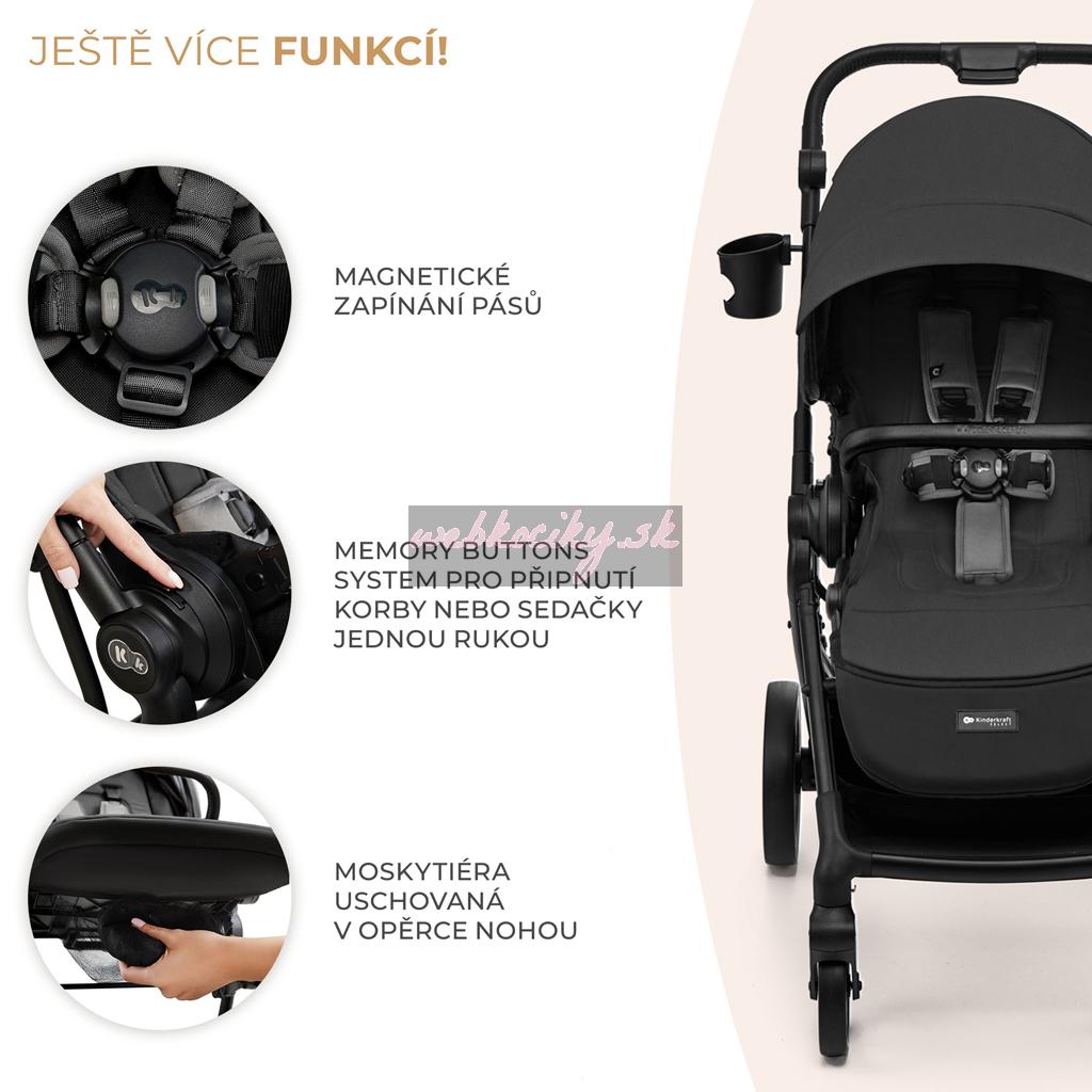 MEMORY BUTTONS SYSTEM umožňuje rýchlo odpojiť športový kočík a vaničku od rámu - len jednou rukou. Magnetická spona pásov uľahčuje zapínanie dieťaťa v kočíku. A pomocou priložených adaptérov môžete vytvoriť TRAVEL SYSTEM, ak máte detskú autosedačku.