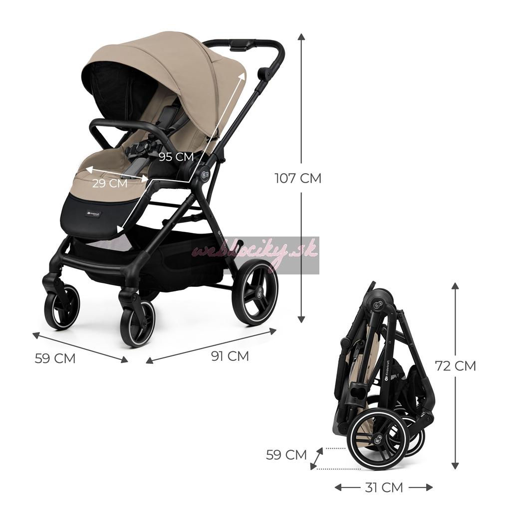 - Rozmery rozloženého kočíka: 91 D x 59 Š x 107 V