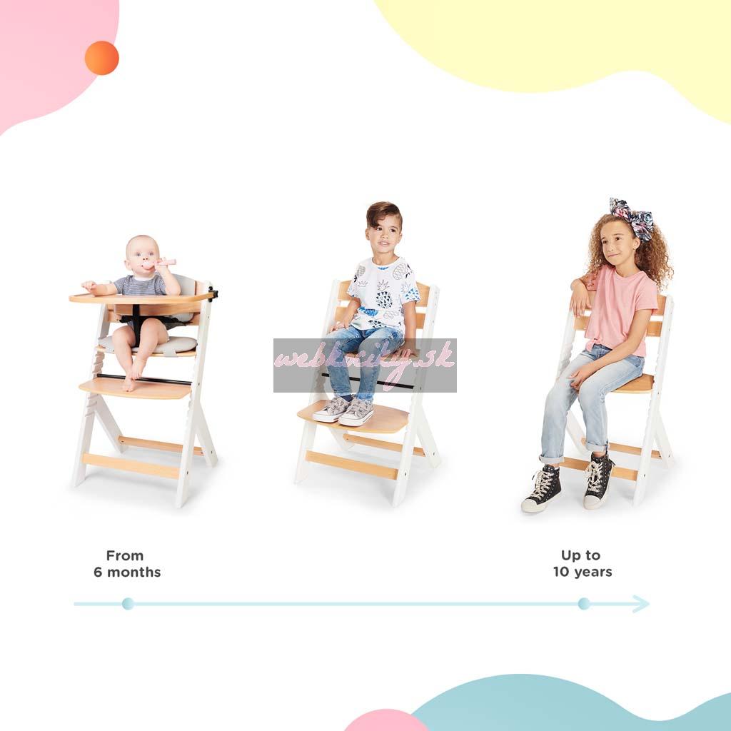 - multifunkčná – stoličku na kŕmenie za niekoľko okamihov premeníte na stoličku pre staršie dieťa a potom pre predškoláka. ENOCK bude slúžiť vášmu dieťaťu od 6 mesiacov až do 10 rokov! Maximálna hmotnosť dieťaťa vo vysokej stoličke: 15 kg, a v nízkej: 35 kg (približne 10 rokov).