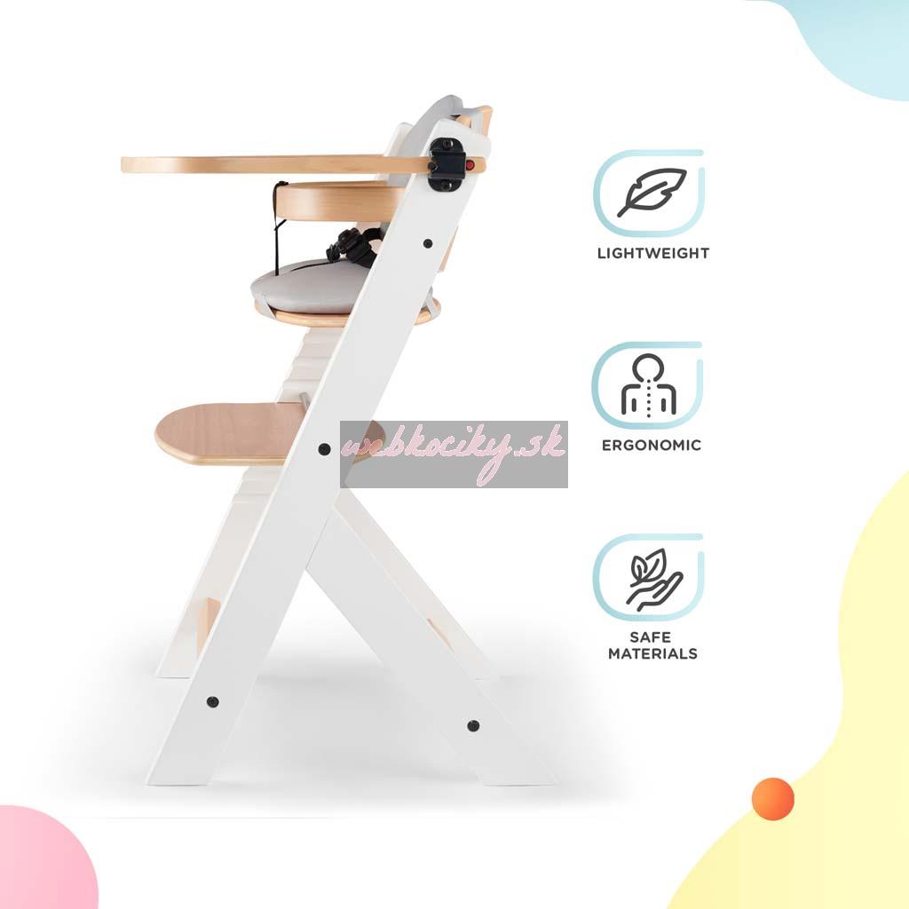 Existuje vôbec stolička na kŕmenie, ktorá bude slúžiť dieťaťu niekoľko rokov? Áno! Práve taká je stolička ENOCK. Enock nie je len bezpečná a praktická vysoká stolička na kŕmenie, ale aj ergonomická stolička pre staršie deti. Ako je to možné? Výška sedadla a opierka nôh sú nastaviteľné, vďaka čomu je jednoduchšie prispôsobiť stoličku veku a výške dieťaťa. ENOCK je navrhnutá pre vašu rodinu – je to stolička, ktorej dizajn bude ladiť aj s interiérom vášho domu alebo bytu. Okrem toho ju jednoducho prispôsobíte stolu v kuchyni, jedálni alebo obývacej izbe. Vďaka profilovanej chrbtovej opierke bude dieťa udržiavať správnu polohu pri jedle, a bude mať možnosť tráviť čas pri stole spoločne s dospelými. Pohodlná vložka priložená k stoličke zaručí pohodlie počas jedla a zábavy.