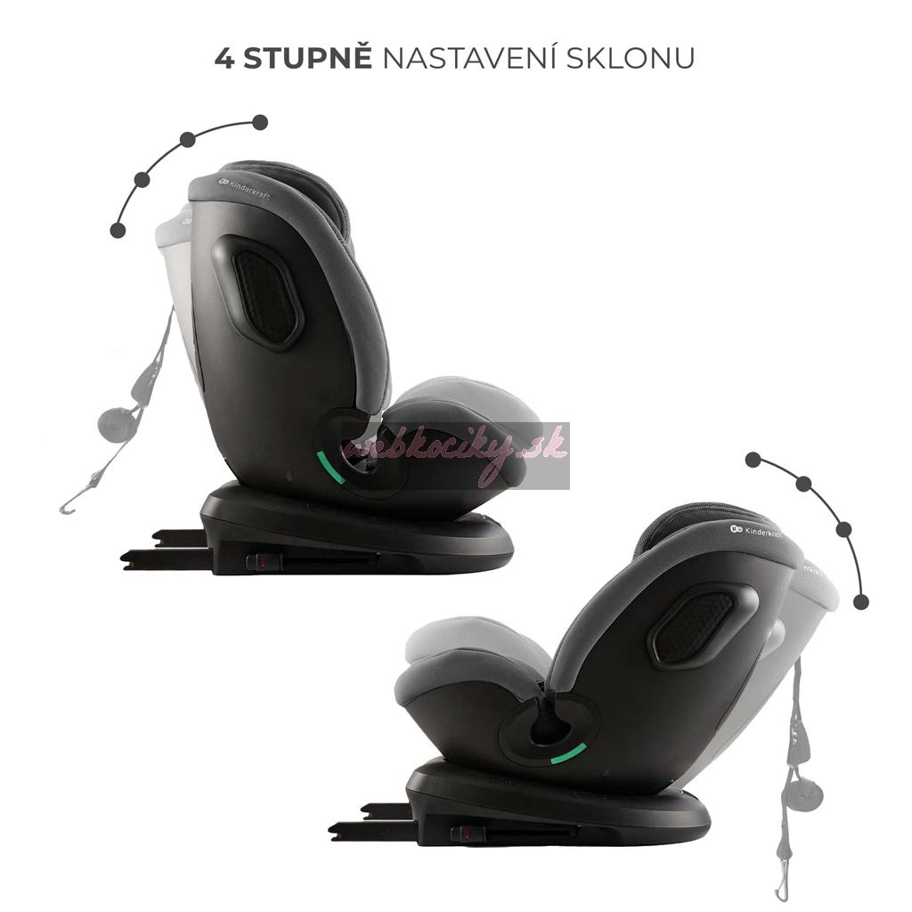 Funkcia RECLINING umožňuje nastavenie chrbtovej opierky autosedačky pomocou 4-stupňového nastavenia uhla sklonu sedadla v polohe RWF aj FWF, čo umožňuje dieťaťu zaujať pohodlnú polohu počas spánku alebo pri aktivite.