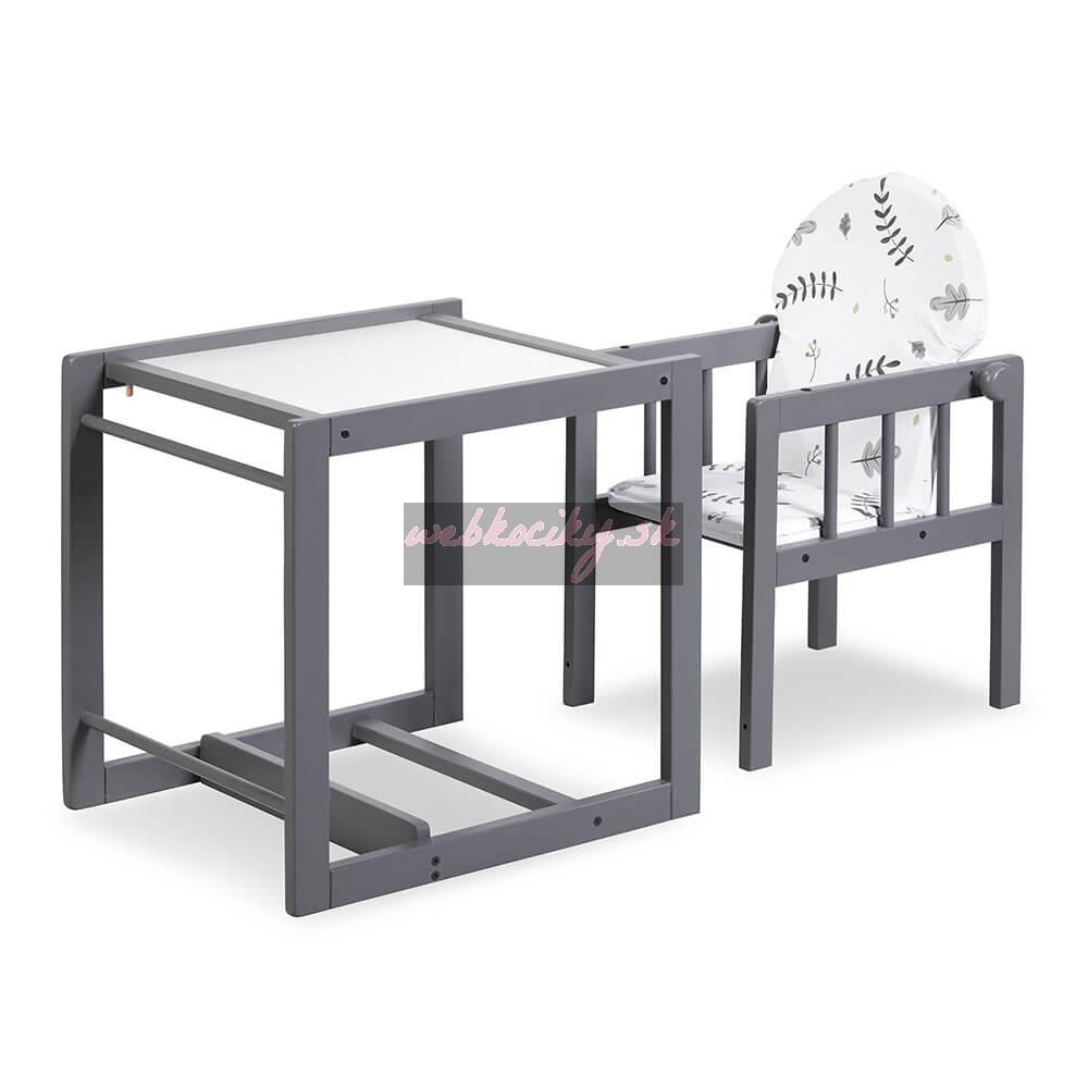 Vysoká stolička na kŕmenie sa dá jednoducho prestavať na stolík a stoličku.