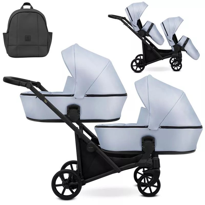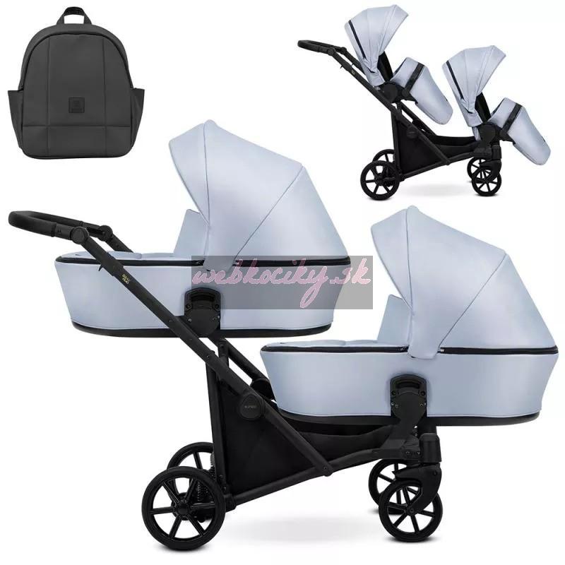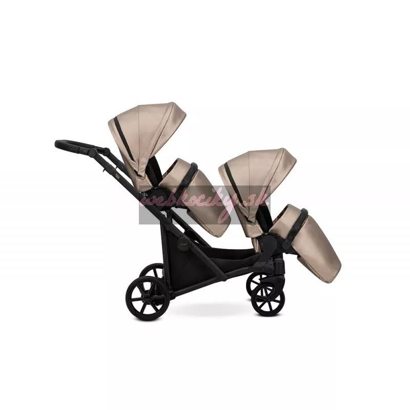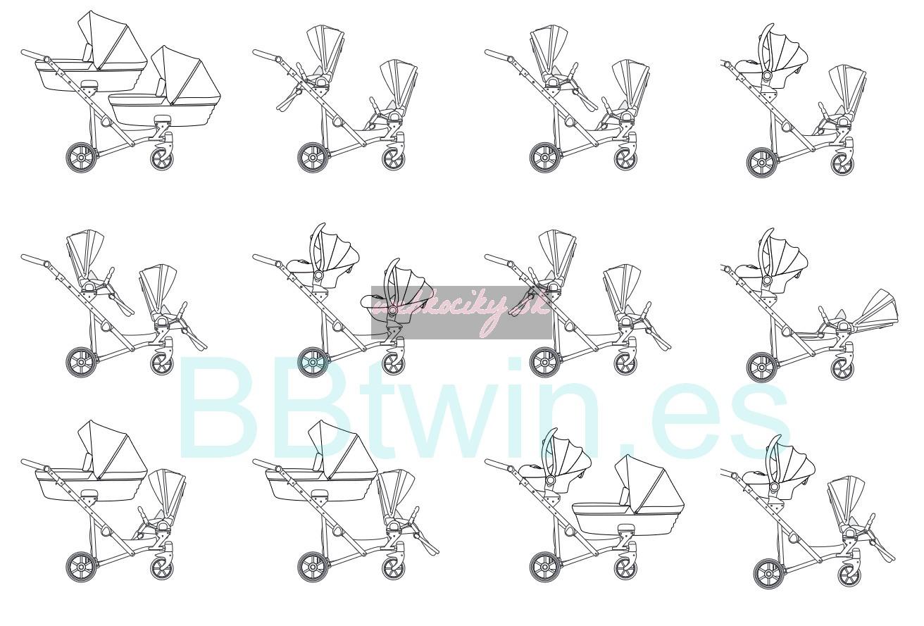 Moderný kočík pre dvojčatá alebo deti s malým vekovým rozdielom. Konštrukcia kočíka je výnimočne pevná a stabilná vďaka čomu je kočík ľahko ovládateľný. Možnosť voľne kombinovať vaničky a sedačky robí z kočíka multifunkčný a univerzálny.