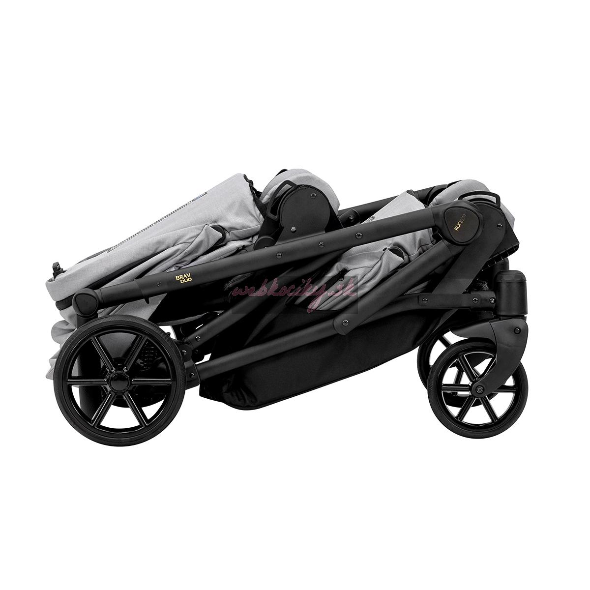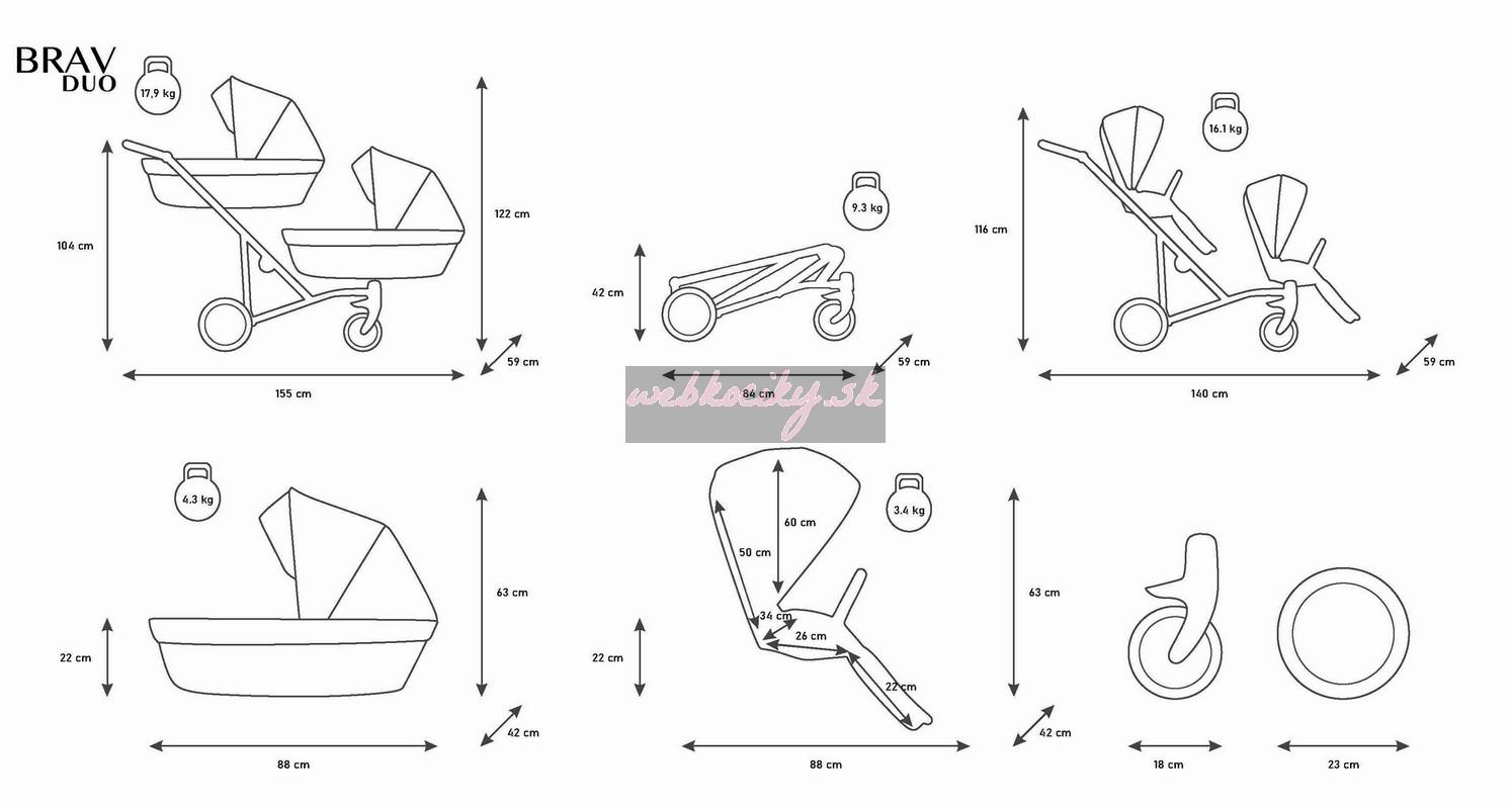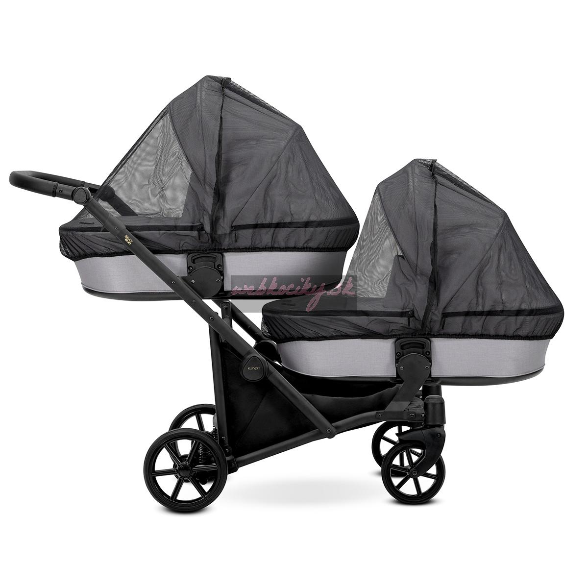 Moderný kočík pre dvojčatá alebo deti s malým vekovým rozdielom. Konštrukcia kočíka je výnimočne pevná a stabilná vďaka čomu je kočík ľahko ovládateľný. Možnosť voľne kombinovať vaničky a sedačky robí z kočíka multifunkčný a univerzálny.