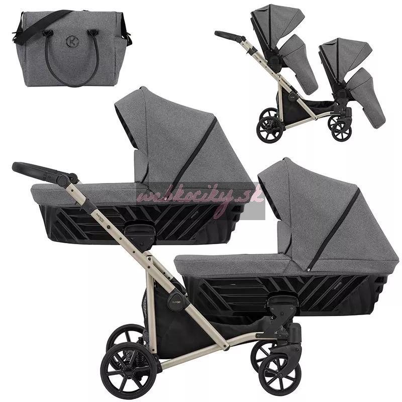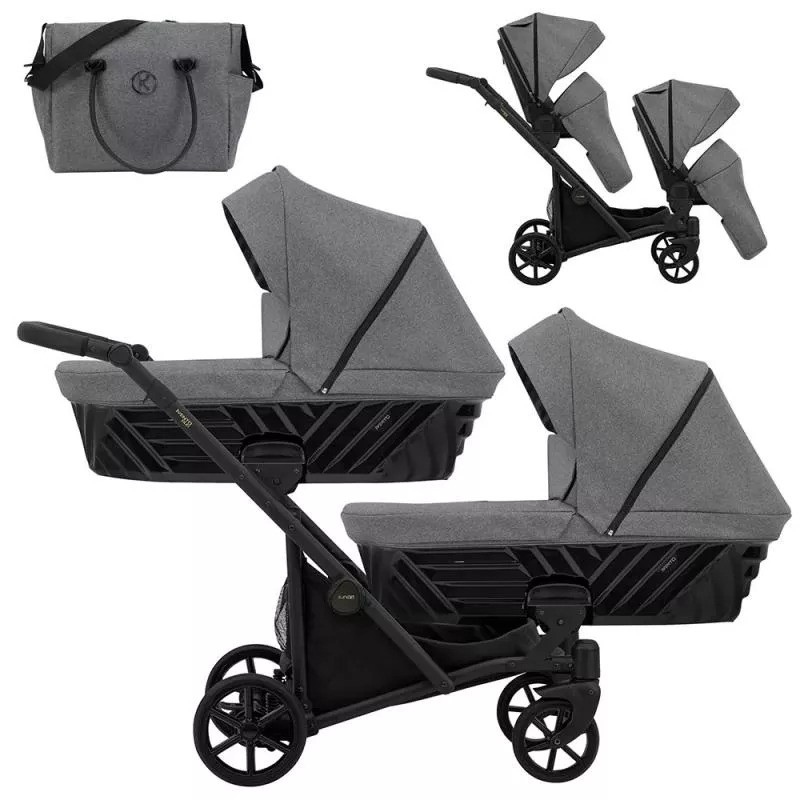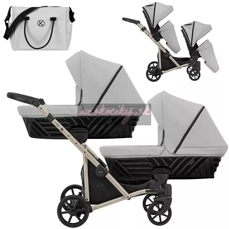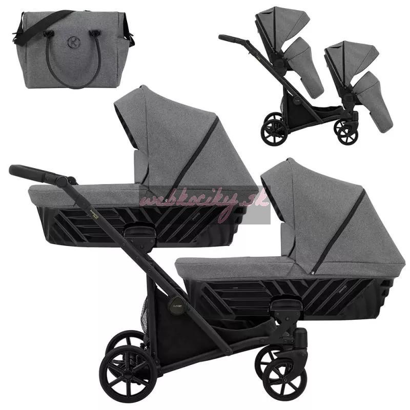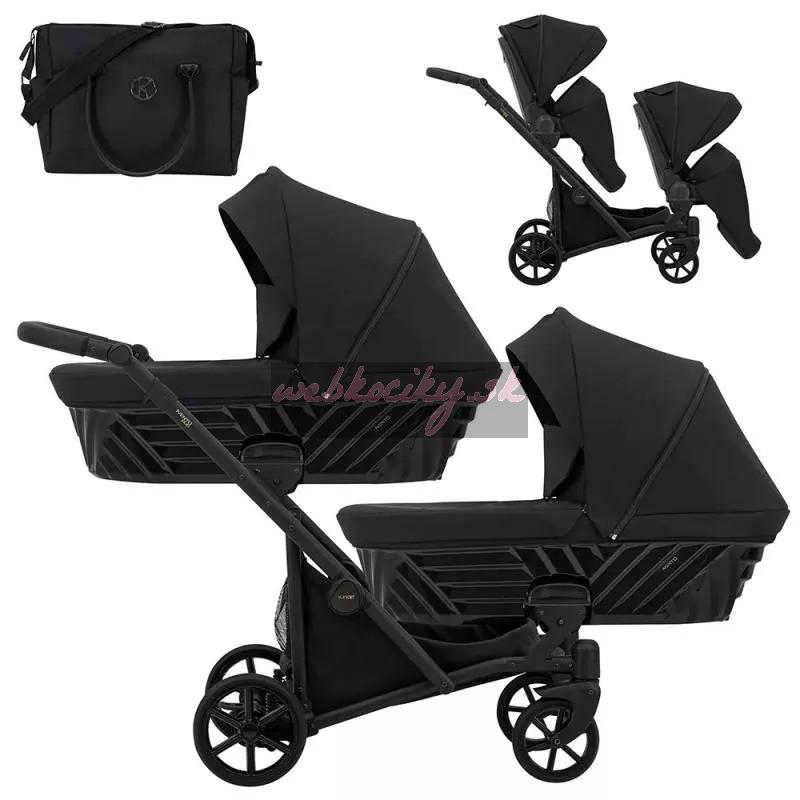 Moderný kočík pre dvojčatá alebo deti s malým vekovým rozdielom. Konštrukcia kočíka je výnimočne pevná a stabilná vďaka čomu je kočík ľahko ovládateľný. Možnosť voľne kombinovať vaničky a sedačky robí z kočíka multifunkčný a univerzálny.