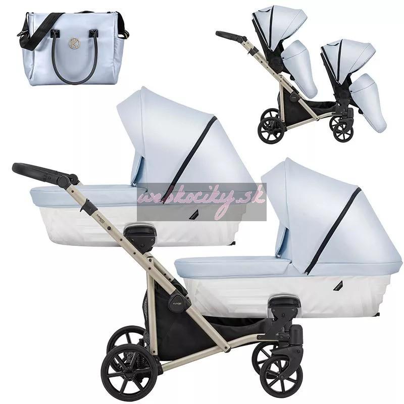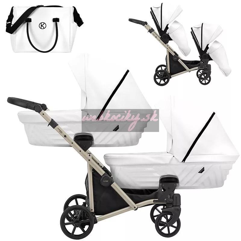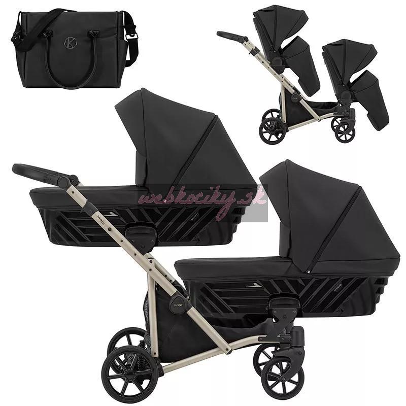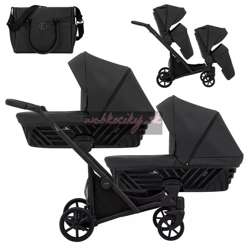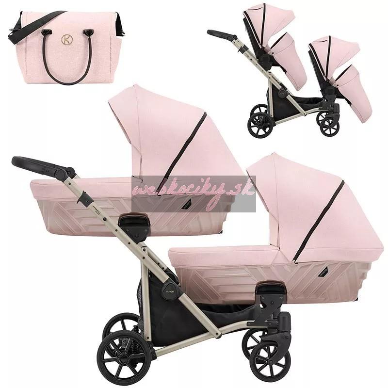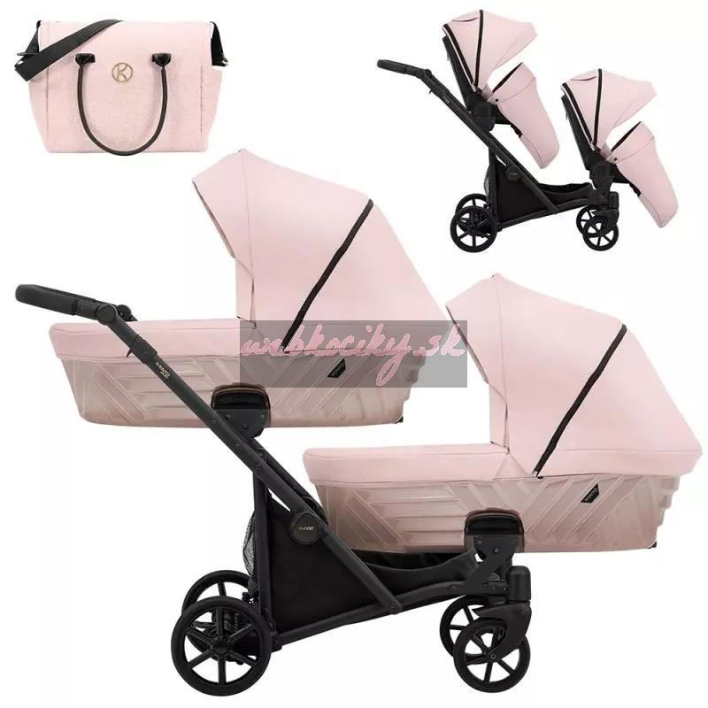 Moderný kočík pre dvojčatá alebo deti s malým vekovým rozdielom. Konštrukcia kočíka je výnimočne pevná a stabilná vďaka čomu je kočík ľahko ovládateľný. Možnosť voľne kombinovať vaničky a sedačky robí z kočíka multifunkčný a univerzálny.