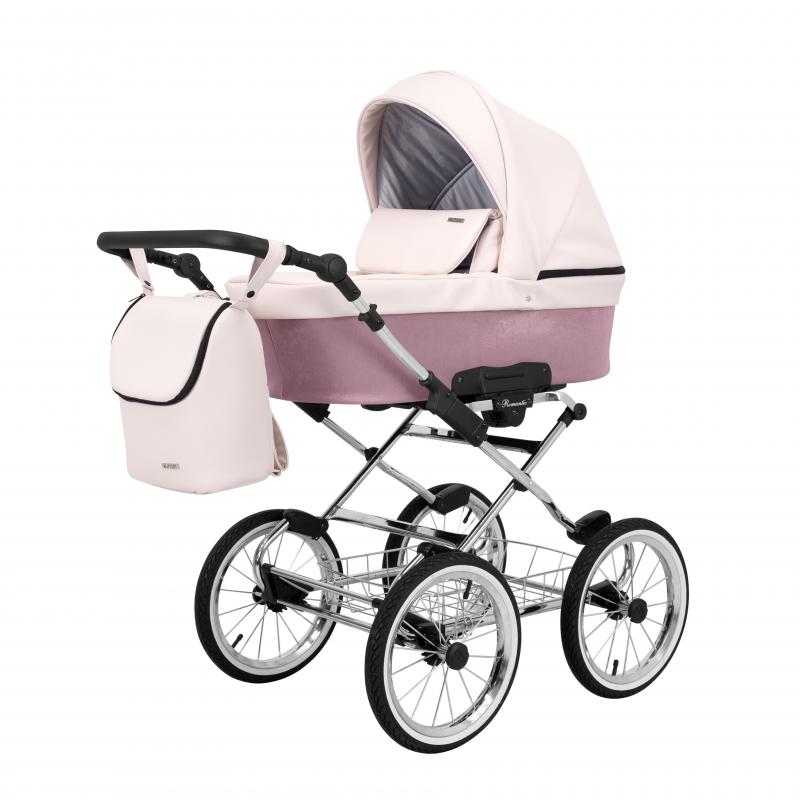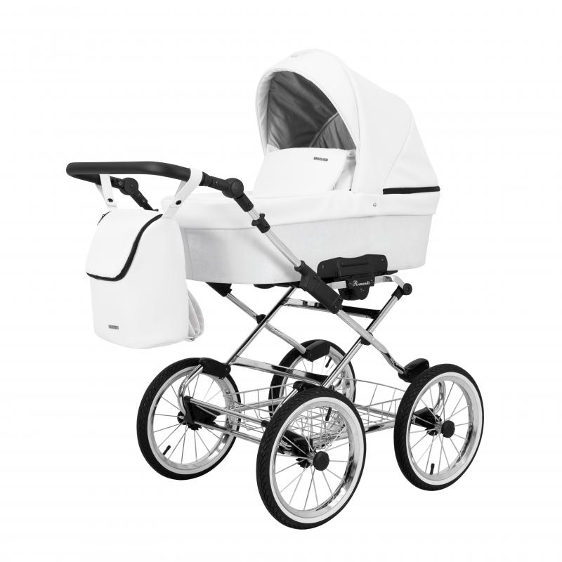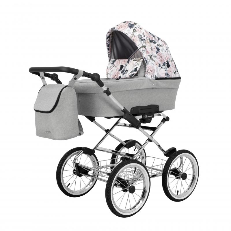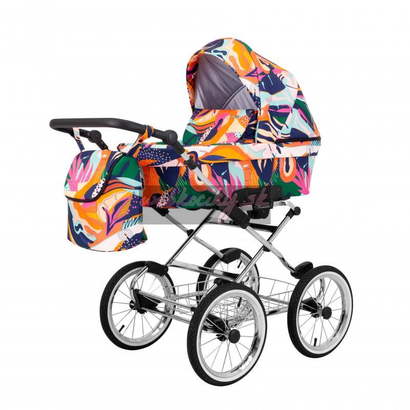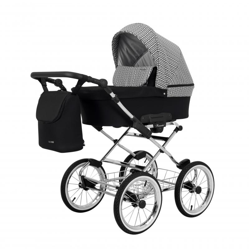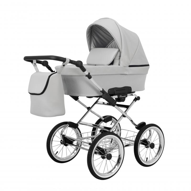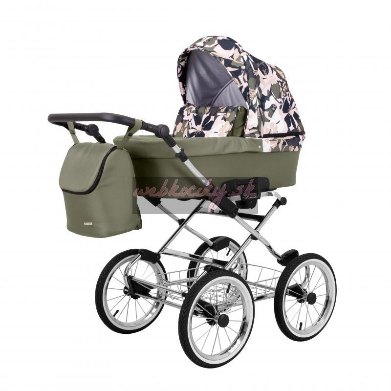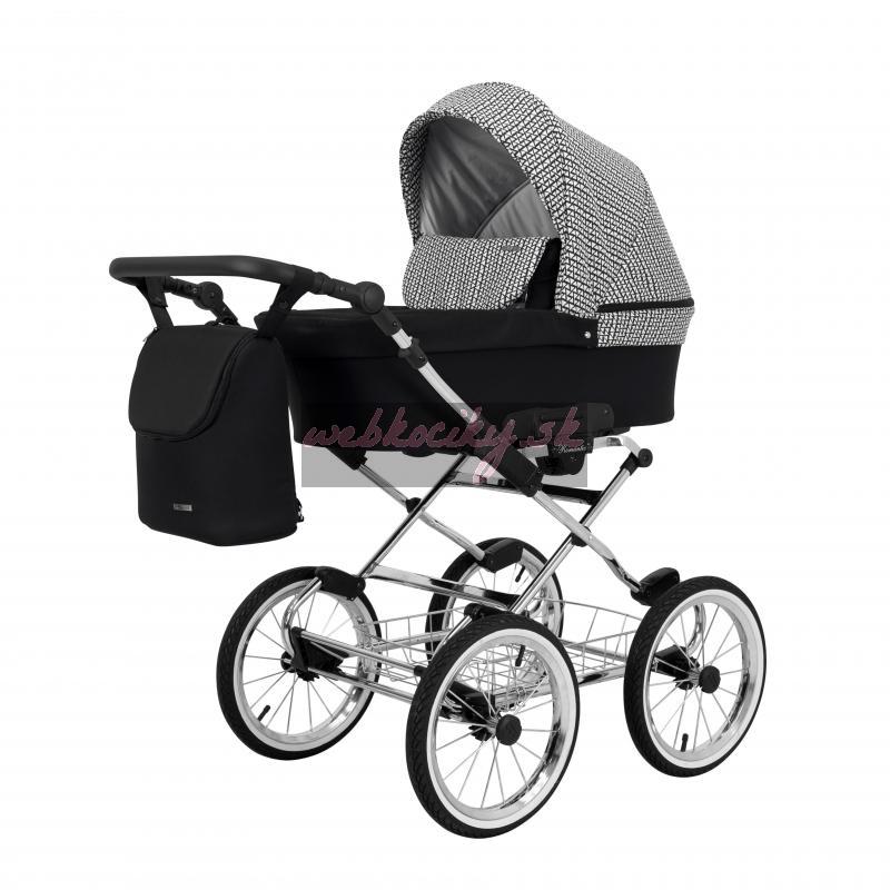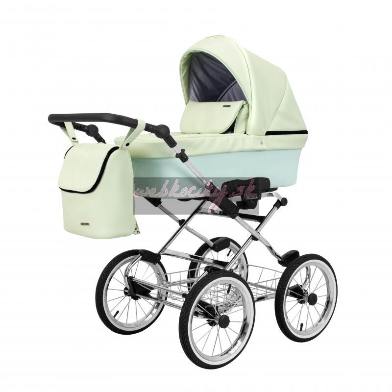 - pochromovaný podvozok kočíka s nafukovacími plne ložiskovými 14" kolesami a kovovým nákupným košom,