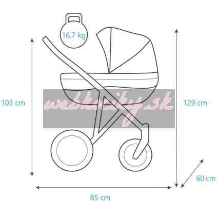 - pochromovaný podvozok kočíka s nafukovacími plne ložiskovými 14" kolesami a kovovým nákupným košom,