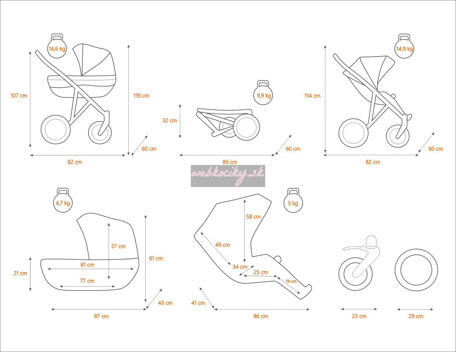 Krásne navrhnutý a štylizovaný kočík. Nová kolekcia kočíkov má pevnú stabilnú konštrukciu. Kočík má kvalitné ložiskové gélové kolesá, ktoré poskytujú komfort pri jazde. Pohodlná a veľká nákupná taška je taktiež veľmi praktická v každodenných situáciách. Veľká priestranná vanička pre Vaše bábätko.