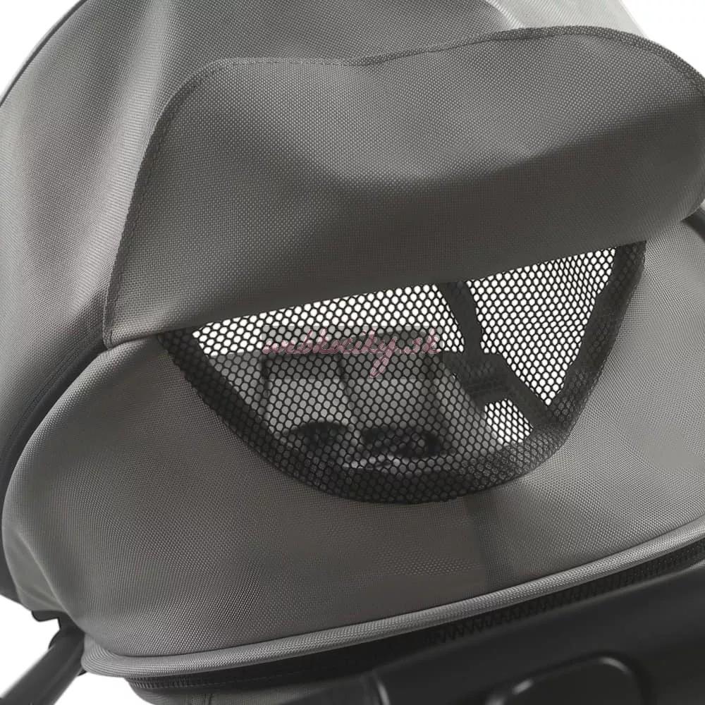 Influencer Air má magneticky otvárateľné vetracie okienko pre vynikajúcu cirkuláciu vzduchu v kočíku. Na zadnej strane je extra veľké vrecko, kam pohodlne odložíte mobil, peňaženku alebo hračky, ak nechcete nosiť samostatnú príručnú tašku. Na prednej strane kočíka je reflexný pásik, vďaka ktorému je kočík viditeľný počas prechádzok.