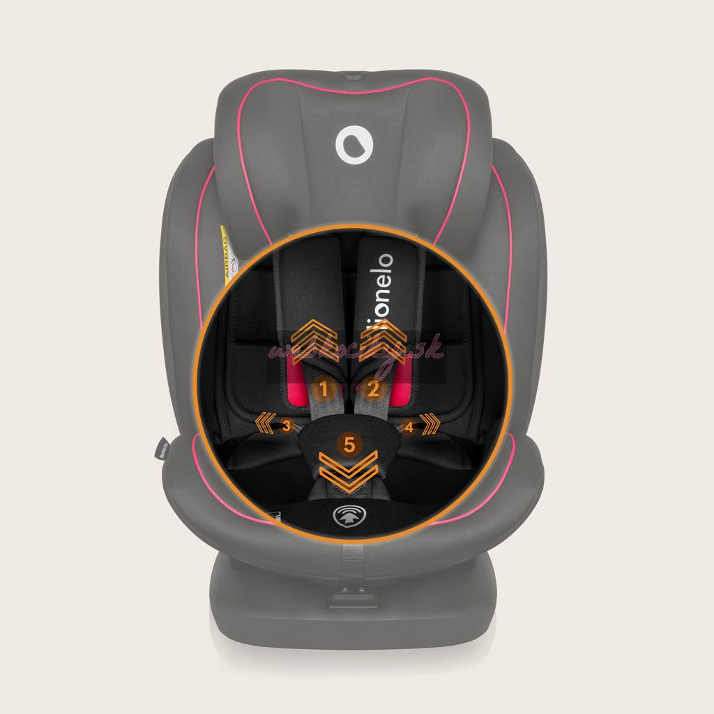 Lionelo Bastiaan i-Size je univerzálny výrobok 4 v 1, ktorý bude dieťaťu slúžiť od prvého dňa života až do okamihu, keď už nebude potrebné autosedačku používať. Veľmi široký rozsah nastavenia prispieva k tomu, že sa autosedačka mení spoločne s potrebami dieťaťa – v prvých mesiacoch života redukčná a bedrová vložka zaisťujú udržanie správnej polohy novorodenca a keď batoľa rastie, stačí zdvihnúť opierku hlavy, upraviť pásy a zmeniť nastavenie autosedačky. Aby vyhovovala potrebám detí rôzneho veku, môžete autosedačku namontovať ako po smere (FWF), tak aj proti (RWF) smeru jazdy.