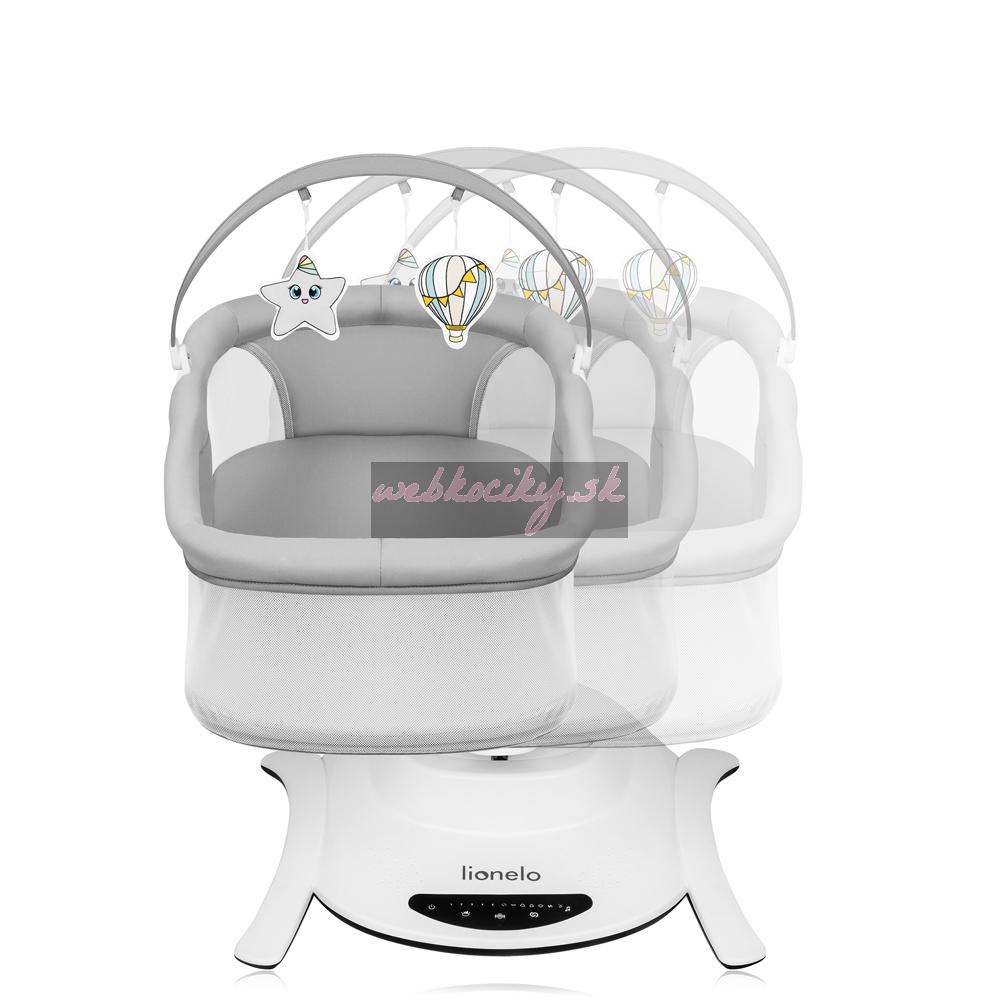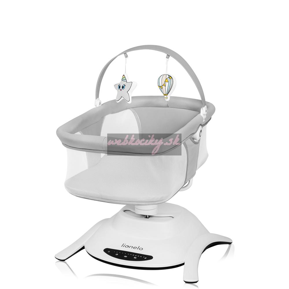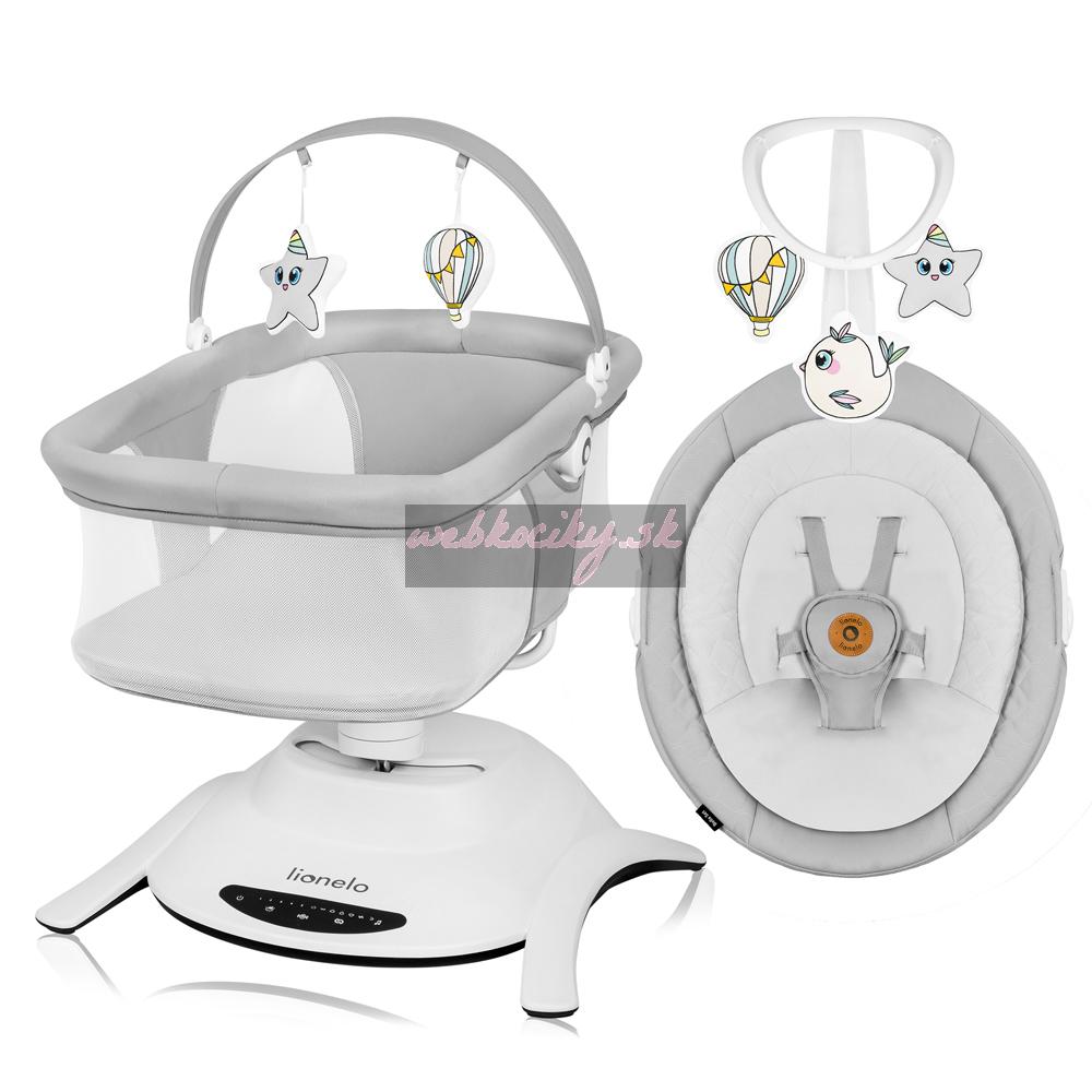 Ešte viac výhod kolísky Lionelo Bella Set 2v1: Všetky nastavenia výrobku sa určujú na dotykovom ovládacom paneli alebo pomocou diaľkového ovládania. Vďaka tichej prevádzke motora si môžete byť istí, že vaše dieťa nebude budiť, keď si sladko zdriemne. Tento model má 12 pokojných melódií a hrazdu s hračkou - 3 vo funkcii kolísania, 2 vo funkcii postieľky. Príslušenstvo ďalej precvičuje koncentráciu dieťaťa, poskytuje mu nové podnety a podnecuje ho k tomu, aby naťahovalo ruky. Kolíska Lionelo Bella Set 2v1 je ľahká a možno ho ľahko premiestniť a postaviť kdekoľvek. Protišmykové podložky chránia podlahu pred poškriabaním. V prípade znečistenia možno rám utrieť vlhkou handričkou a poťah matraca a čalúnenie je možné prať ručne. Súčasťou balenia je aj funkčná moskytiéra určená na vaničku.