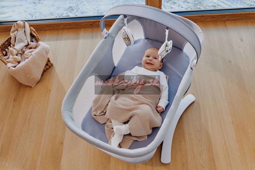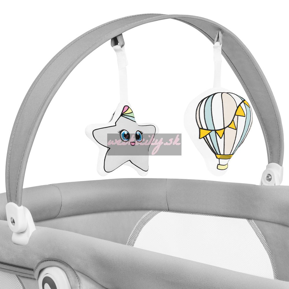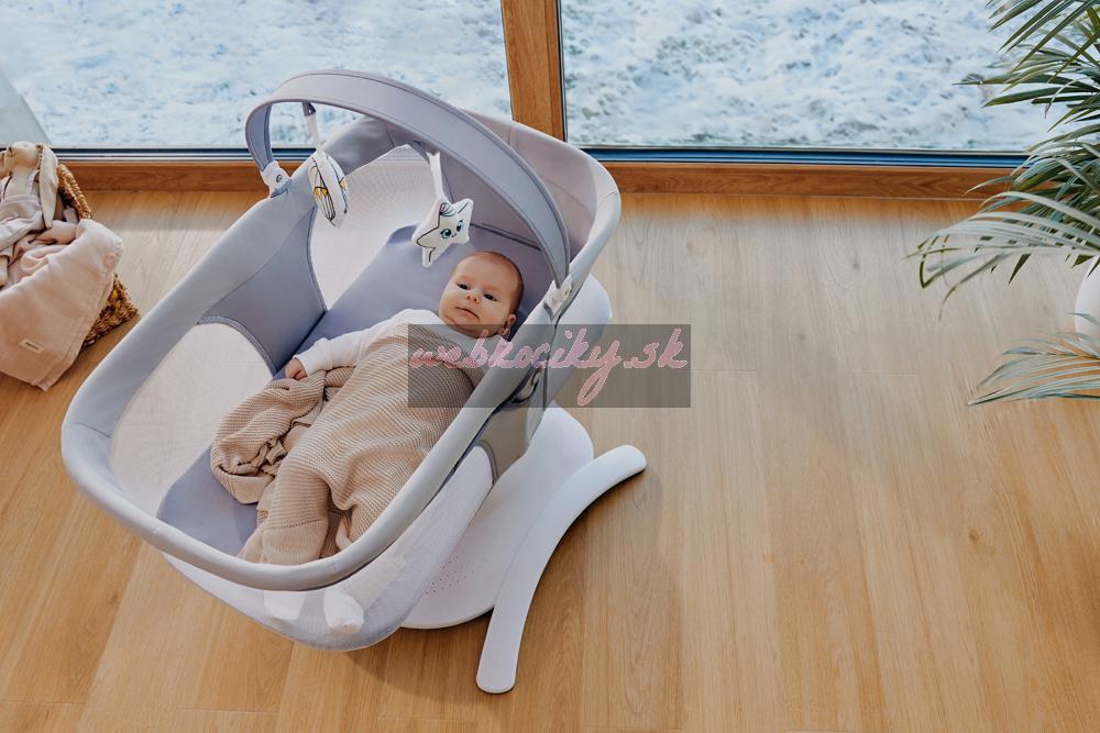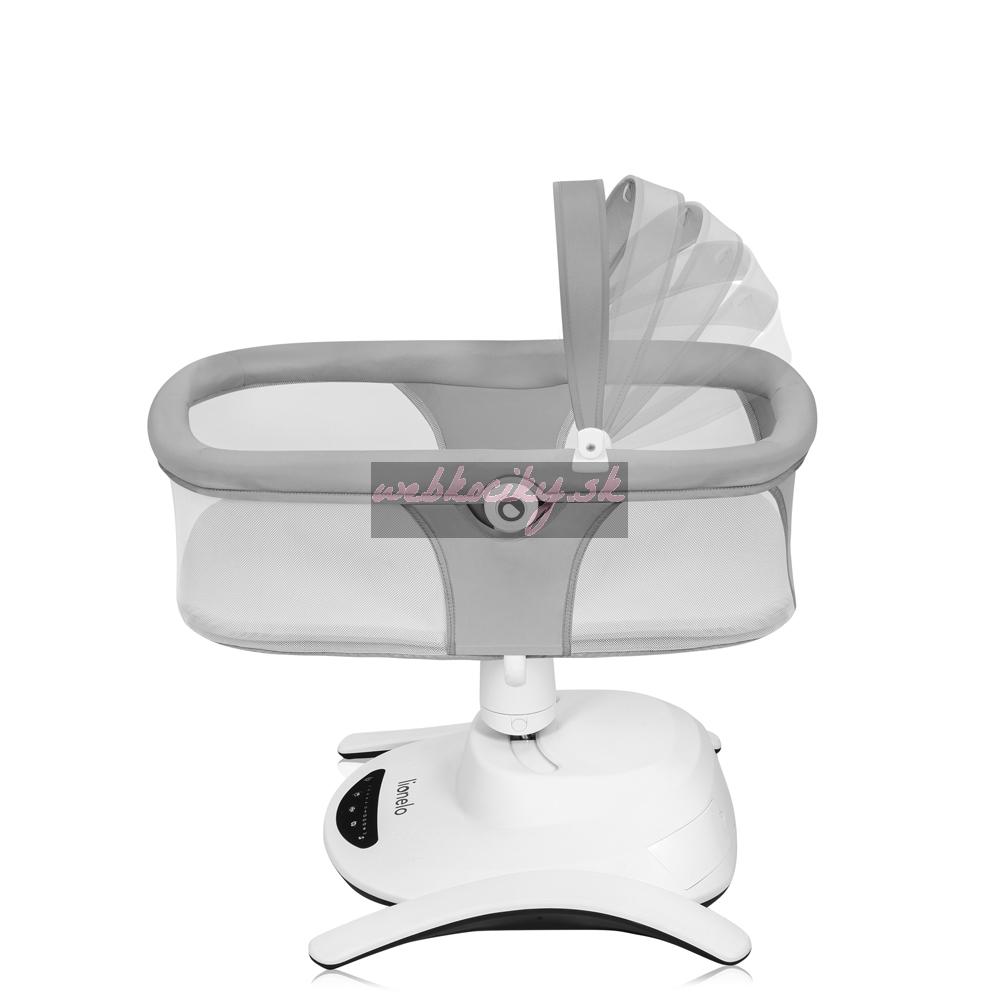 Ešte viac výhod kolísky Lionelo Bella Set 2v1: Všetky nastavenia výrobku sa určujú na dotykovom ovládacom paneli alebo pomocou diaľkového ovládania. Vďaka tichej prevádzke motora si môžete byť istí, že vaše dieťa nebude budiť, keď si sladko zdriemne. Tento model má 12 pokojných melódií a hrazdu s hračkou - 3 vo funkcii kolísania, 2 vo funkcii postieľky. Príslušenstvo ďalej precvičuje koncentráciu dieťaťa, poskytuje mu nové podnety a podnecuje ho k tomu, aby naťahovalo ruky. Kolíska Lionelo Bella Set 2v1 je ľahká a možno ho ľahko premiestniť a postaviť kdekoľvek. Protišmykové podložky chránia podlahu pred poškriabaním. V prípade znečistenia možno rám utrieť vlhkou handričkou a poťah matraca a čalúnenie je možné prať ručne. Súčasťou balenia je aj funkčná moskytiéra určená na vaničku.