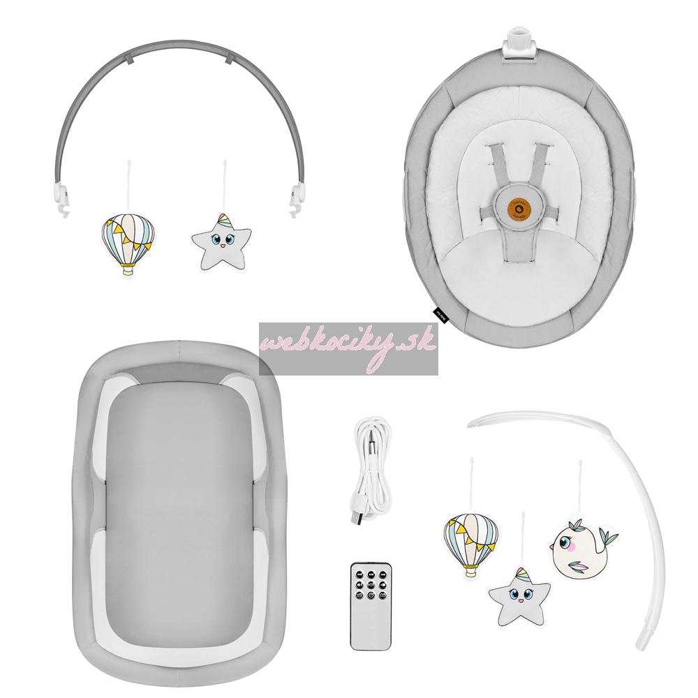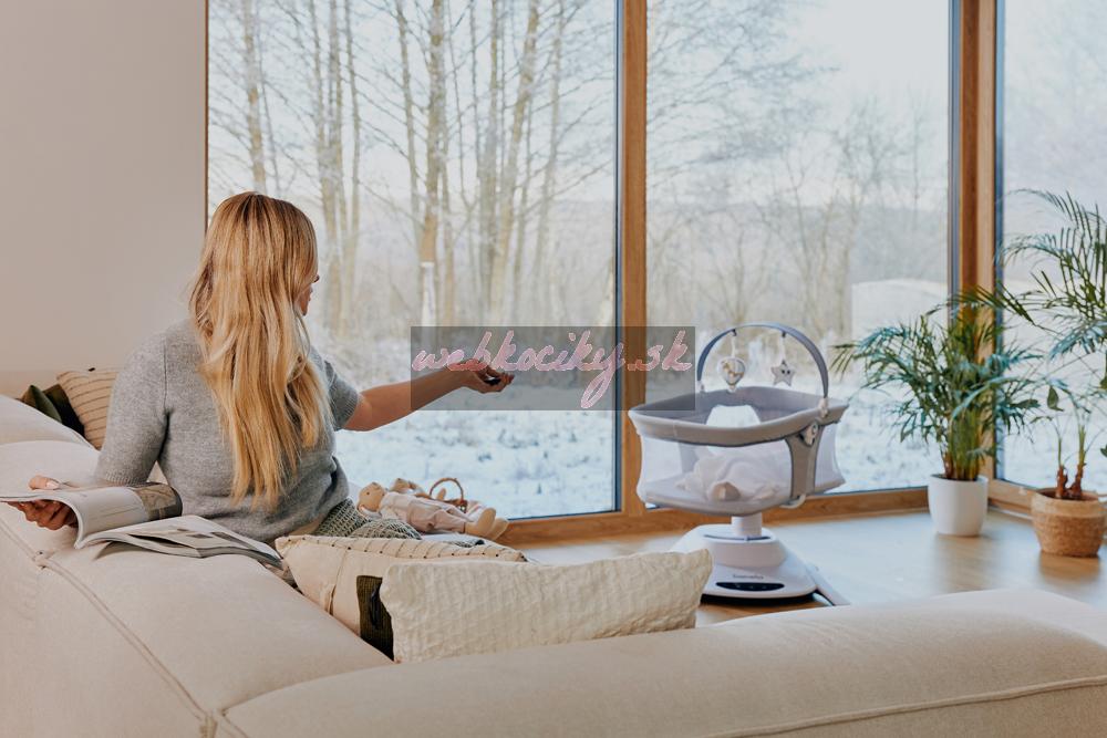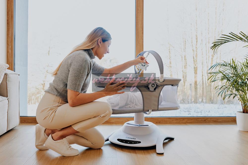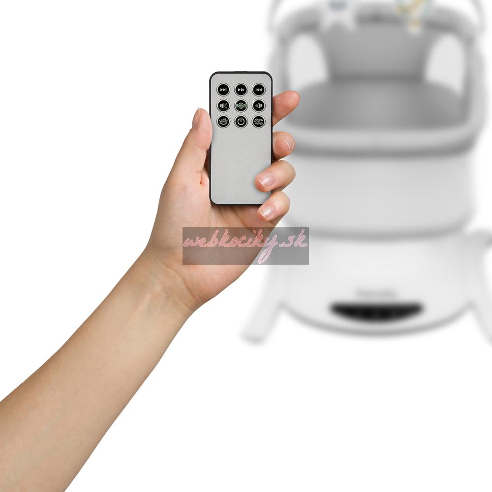 Funkcie, ktoré uľahčujú život: Kolíska je vybavená mnohými užitočnými funkciami, ktoré rodičom uľahčia život. Nočný režim spôsobí, že sa kolíska začne pomaly spomaľovať, až kým sa úplne nezastaví. Aktivácia automatického detektoru pohybu - zapne hojdanie a hudbu, keď sa batoľa začne vrtieť. Je to preto, že Bella sa o dieťa stará rovnako inštinktívne ako jeho opatrovateľ. O všetkých nastaveniach prístroja môžete rozhodovať na dotykovom ovládacom paneli alebo na diaľku pomocou diaľkového ovládania. Tento model hrá 12 pokojných melódií s ovládaním hlasitosti.