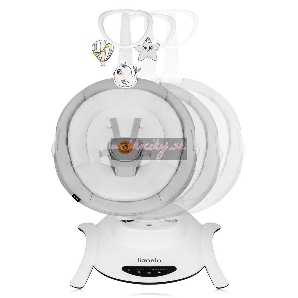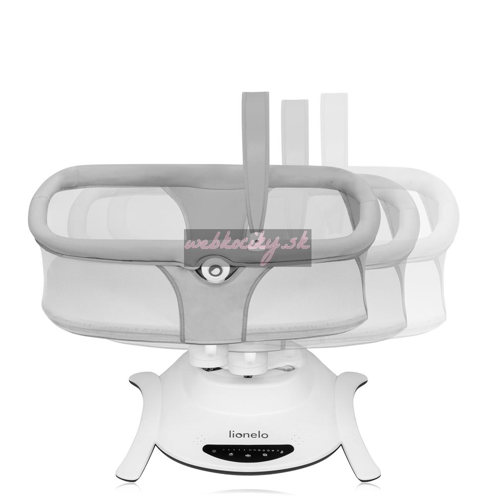 Ako v objatí rodiča: Pri navrhovaní kolísky Lionelo Bella Set 2v1 sme vychádzali z pohybov, ktoré dieťa cíti v náručí rodiča. Kolíska má 6 jedinečných kolísavých pohybov - 5 základných režimov a ďalší režim, ktorý sa mení každých 16 sekúnd. Vďaka kolísavému pohybu s viacerými dráhami zachytáva Bella prirodzený rytmus ako v rodičovskom náručí, takže kolíska je pre dieťa známym a príjemným miestom. Výber z 5 rýchlostí kolísania prispôsobí intenzitu kolísania preferenciám a nálade vášho dieťaťa.