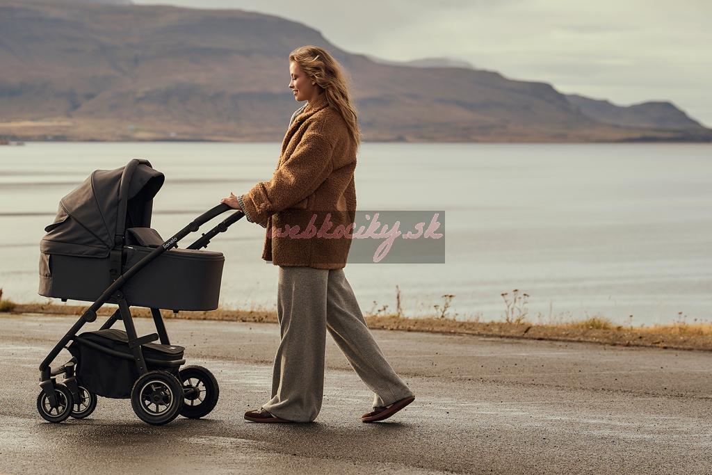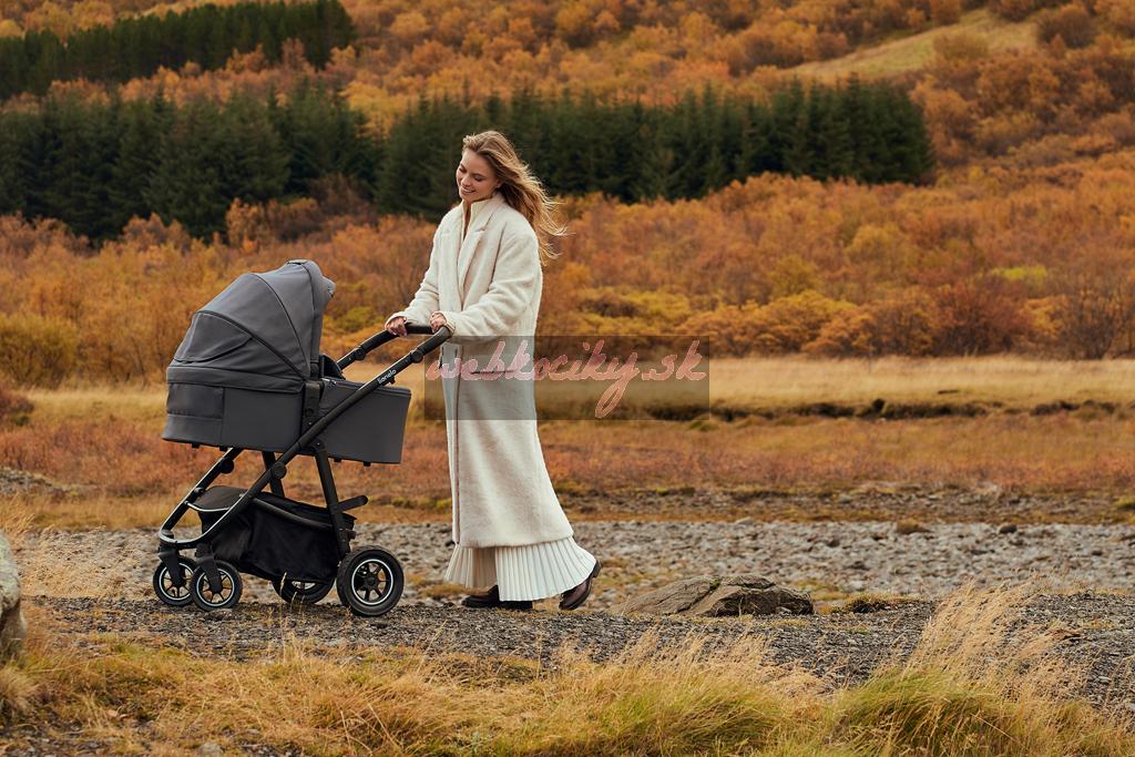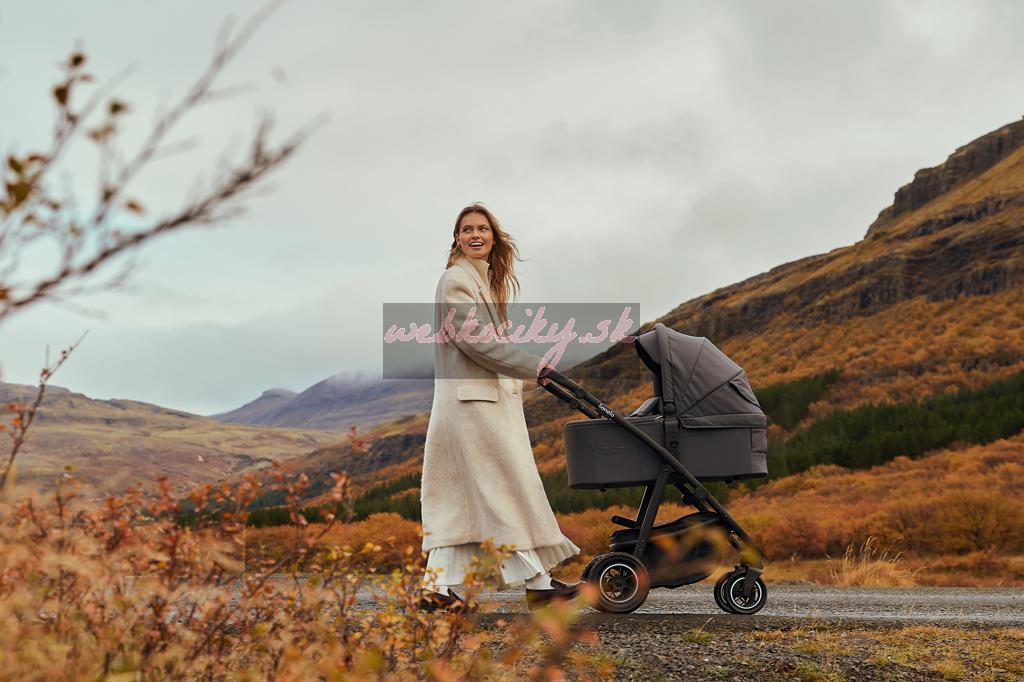 Prémiové tkaniny a vonkajší filter UPF+: Vždy vyzerajú dokonale. Sú vodeodolné, mäkké na dotyk a nekrčia sa, takže kočík vyzerá elegantne a esteticky každý deň. Filter UPF+ na kabíne je aplikovaný zvonku, takže nebolo nutné používať ďalšiu podšívku.