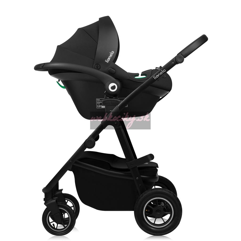 Autosedačka Lionelo Astrid i-Size s ADAC: Súčasťou kočíka je aj detská autosedačka Astrid i-Size s certifikáciou ADAC. Spiace batoľa je možné v autosedačke/nosítku vybrať z auta a autosedačku možno ľahko pripnúť k podvozku kočíka, aby ste sa dostali domov bez nutnosti prebudenia dieťaťa.