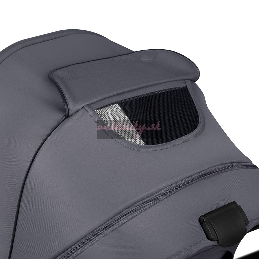 3D panoramatické vetranie: Je pohodlne nastaviteľné pomocou estetických magnetov a zaisťuje mnohostranné optimálne prúdenie vzduchu v sedačke a pohodlí pre batoľa aj v horúcich dňoch. Vo ventilačnej strieške je tiež ďalšie vetracie okienko.