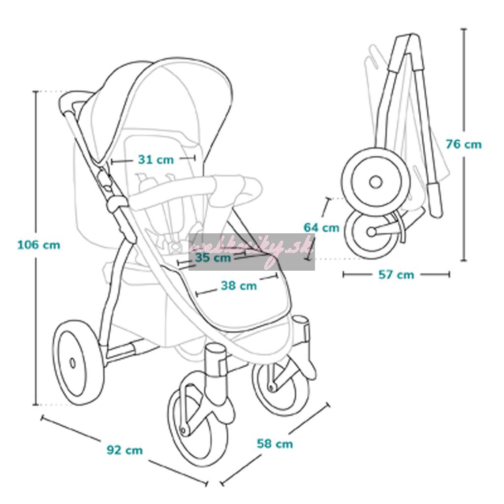 - rozmery zloženého kočíka: 76 v x 57 š x 64 d(cm)