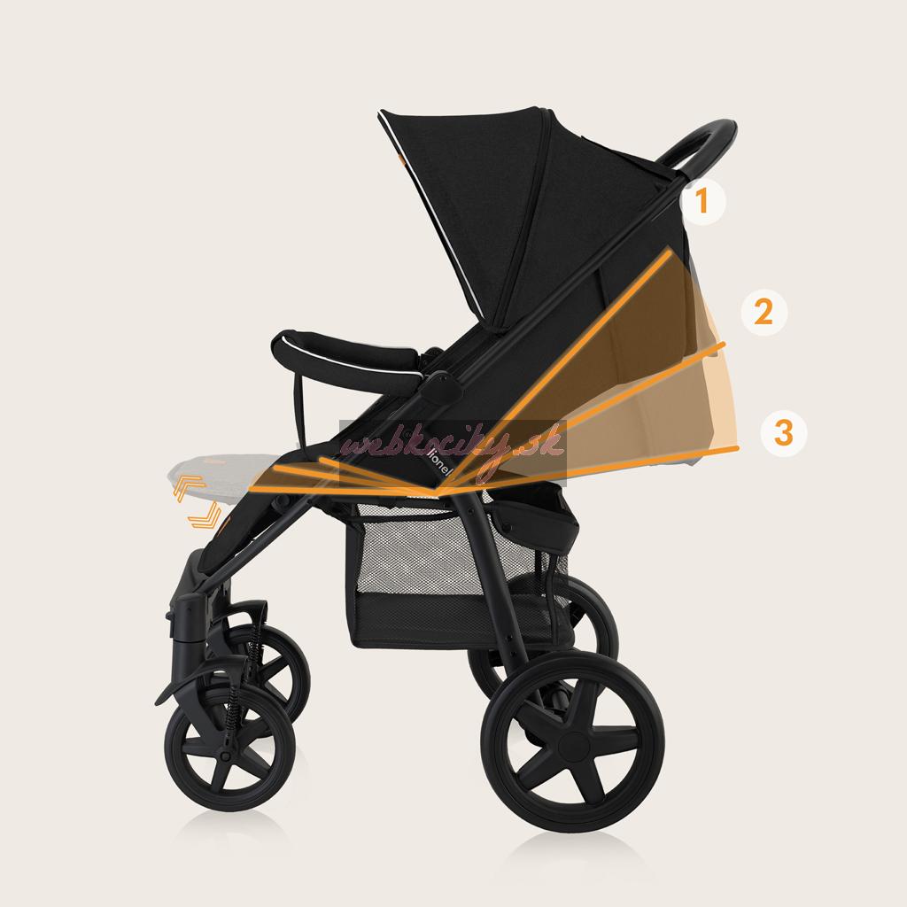 Pohodlie pre dieťa: Priestranné sedadlo v kombinácii s 3-stupňovým nastavením operadla prispievajú k tomu, že dieťa môže v kočíku voľne odpočívať. Samotné operadlo je možné nastaviť do polohy v ľahu, ktorá umožňuje zdriemnutie. Navyše 6-stupňové nastavenie výšky opierky nôh umožňuje dieťaťu zaujať ergonomickú a stabilnú polohu. V sade je navyše moskytiéra, nánožník a držiak na hrnček, ktoré zvyšujú pohodlie na každej prechádzke.