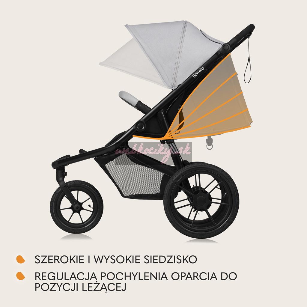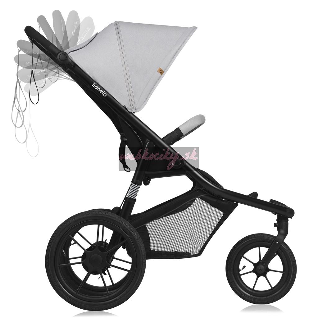 Kočík Lionelo Azura je všestranný kočík, ktorý sa skvele hodí na každodenné použitie aj pre všetky druhy fyzických aktivít. Nafukovacie kolesá v kombinácii s celoodpruženým systémom zaisťujú veľmi pohodlné ovládanie aj na nerovnostiach. V záujme pohodlia dieťaťa sme zaistili možnosť nastavenia operadla do polohy v ľahu. Priestranná XXL strieška navyše dieťa nielen chráni pred vetrom alebo dažďom, ale aj pred nadmernými podnetmi. Rodičia ocenia ako ručnú brzdu, ktorá uľahčuje rýchle zastavenie kočíka, napríklad pri jazde, tak tradičnú centrálnu brzdu, ktorá je ideálna pre každodenné používanie. Kočík je vhodný pre deti od 6 mesiacov do hmotnosti 22 kg.