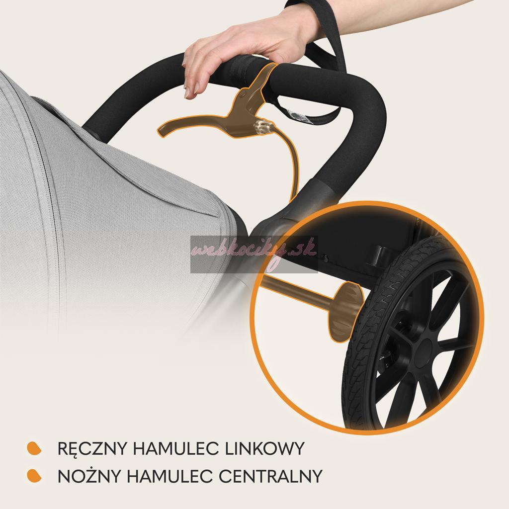 Brzda: Ručná lanková brzda sa skvele hodí pre aktívne prechádzky a uľahčuje rýchlu reakciu. Kočík Azura má navyše centrálnu brzdu ovládanú nohou, ktorá zaručuje pohodlie pri každodenných prechádzkach.
