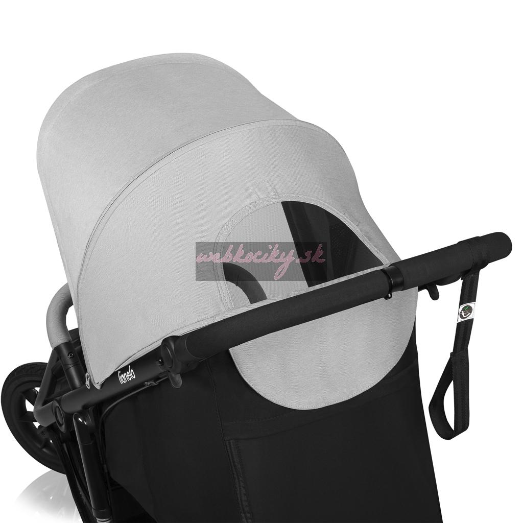 Pohodlie pre dieťa: Široké a vysoké sedadlo zaisťuje dieťaťu pohodlie pri prechádzke a tiež dlhú životnosť kočíka. Plynulo nastaviteľné polohovanie operadla naopak umožňuje batoľatám pohodlne si zdriemnuť. Odnímateľný vetrací panel za sedadlom zaručuje voľnú cirkuláciu vzduchu.