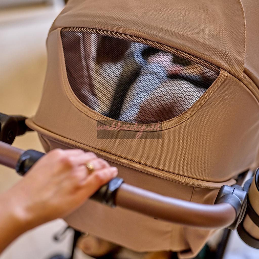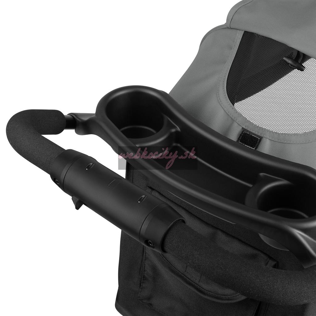 Taška a organizér pre rodičov: Do praktickej tašky môžete vložiť užitočné predmety pre starostlivosť alebo potraviny a zavesiť ju na rukoväť kočíka. Vrecko na suchý zips za operadlom sedadla kočíka umožňuje rýchly prístup k potrebným veciam, napr. kľúčom alebo peňaženke.