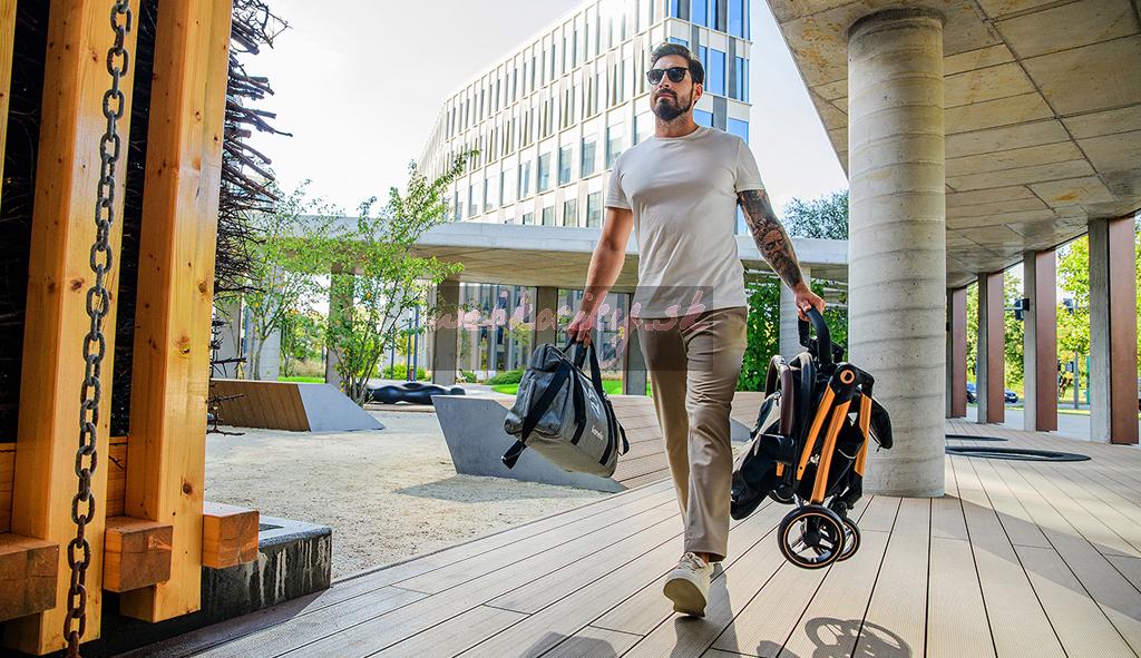 Jednoduché skladanie: Kočík je vybavený systémom auto-folding, čo znamená, že po stlačení tlačidla a uvoľnení poistky sa športový kočík automaticky zloží do kompaktnej veľkosti. Všetko sa vykonáva jednou rukou.