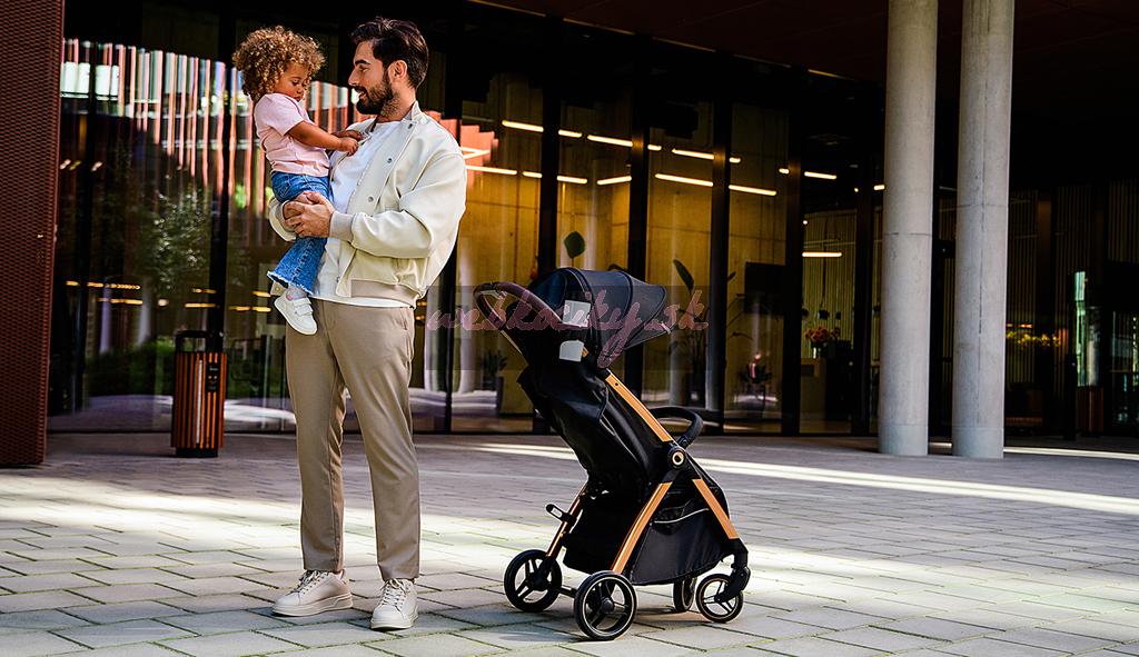 Jednoduché skladanie: Kočík je vybavený systémom auto-folding, čo znamená, že po stlačení tlačidla a uvoľnení poistky sa športový kočík automaticky zloží do kompaktnej veľkosti. Všetko sa vykonáva jednou rukou.