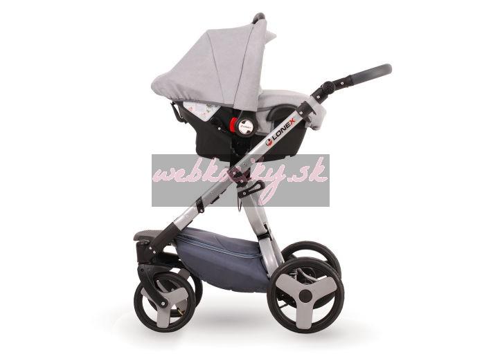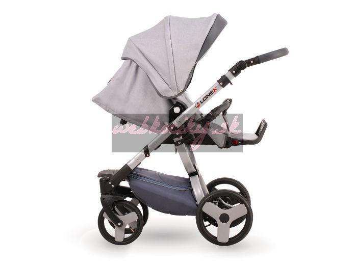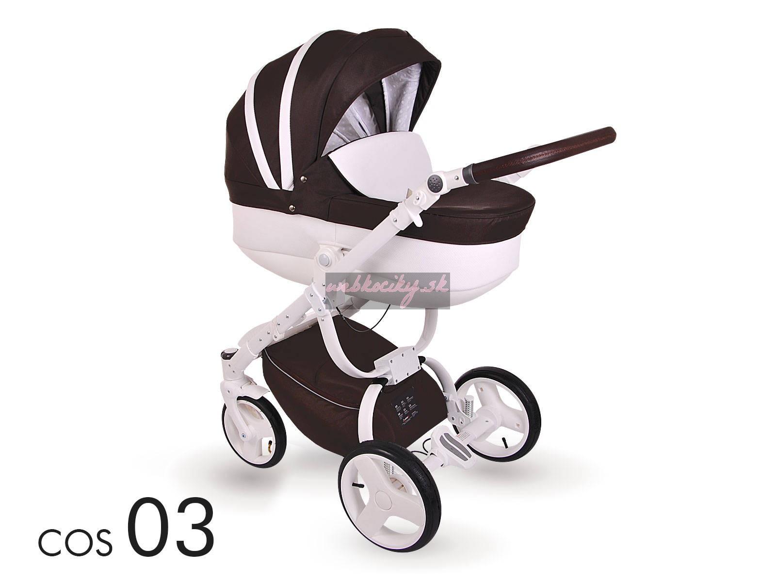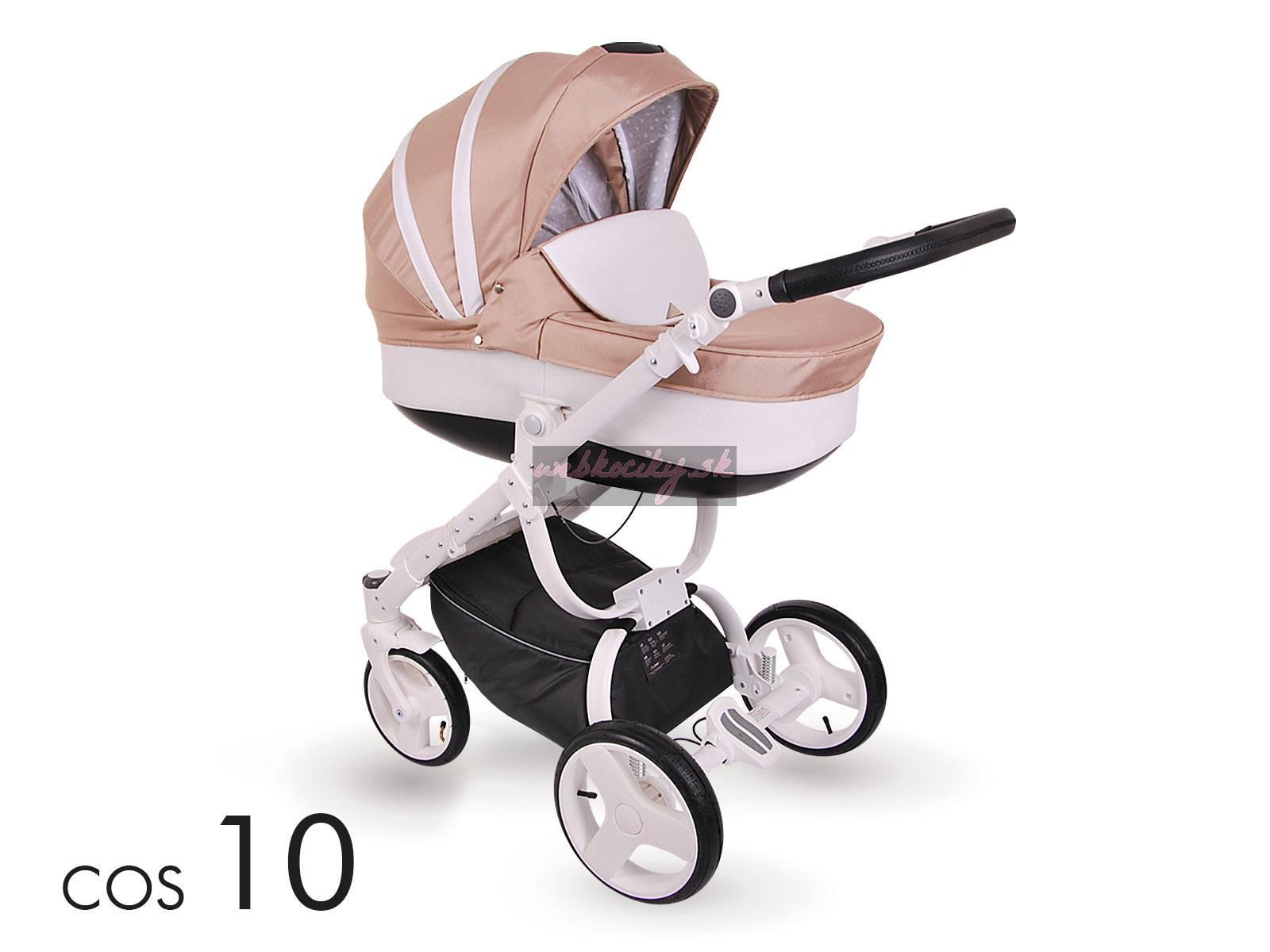 Model COSMO je moderný kočík s otočnými kolesami a čiastočne plastovou vaničkou s nastaviteľným vetraním zdola. Kočík COSMO je dostupný s tkaninami z ľanu.