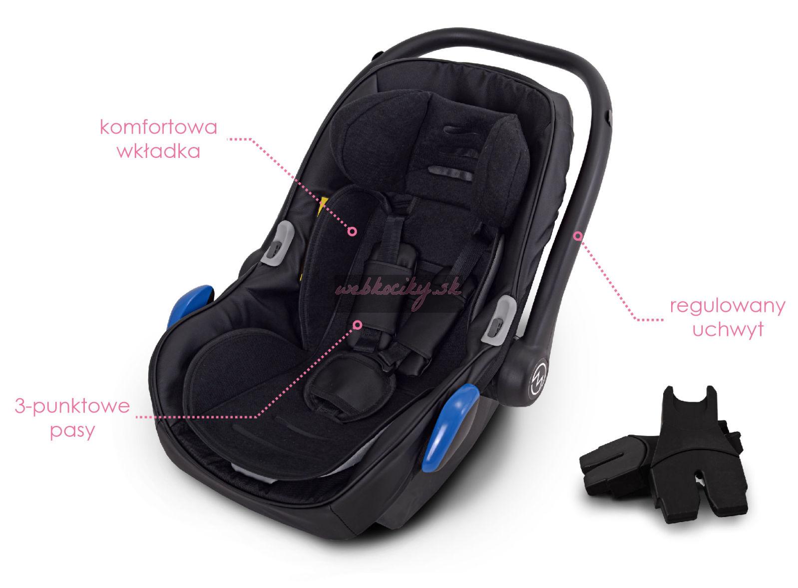 - Autosedačka vo farbe kočíka + strieška a nánožník, 3-bodové bezpečnostné pásy, mäkká výstelka pre najmenšie deti a sieťka do autosedačky,