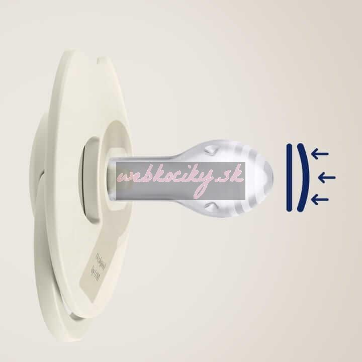 Tvar gumičky cumlíka je symetrický, inšpirovaný tvarom prsnej bradavky, aby vášmu bábätku poskytol známy pocit.